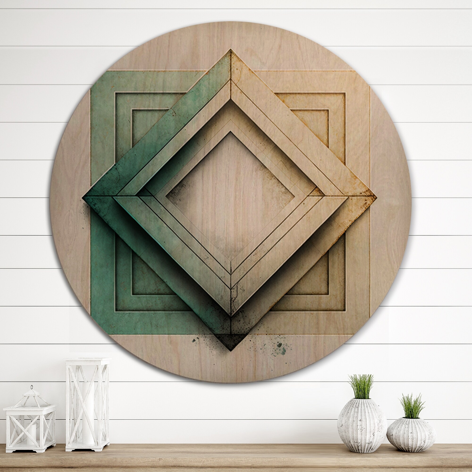 Designart "Impermanence Japanese Vintage Art VI" Modern Geometric Wood Wall Art - Natural Pine Wood