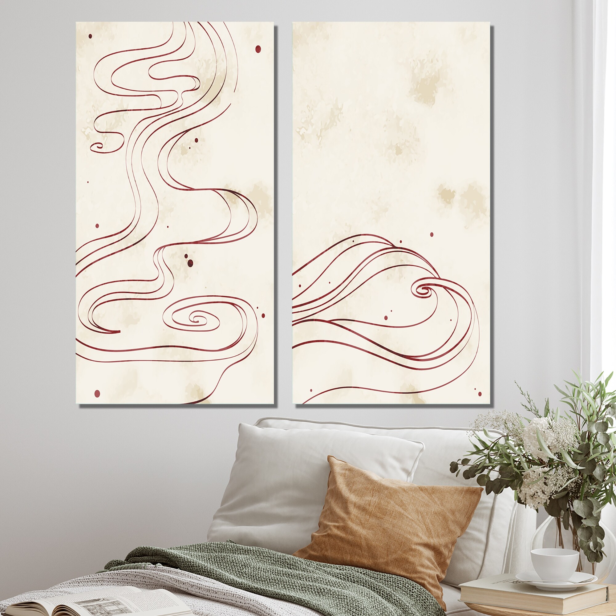 Designart 'Japanese Vintage Grunge Doodles I' Abstract Set of 2 Pieces