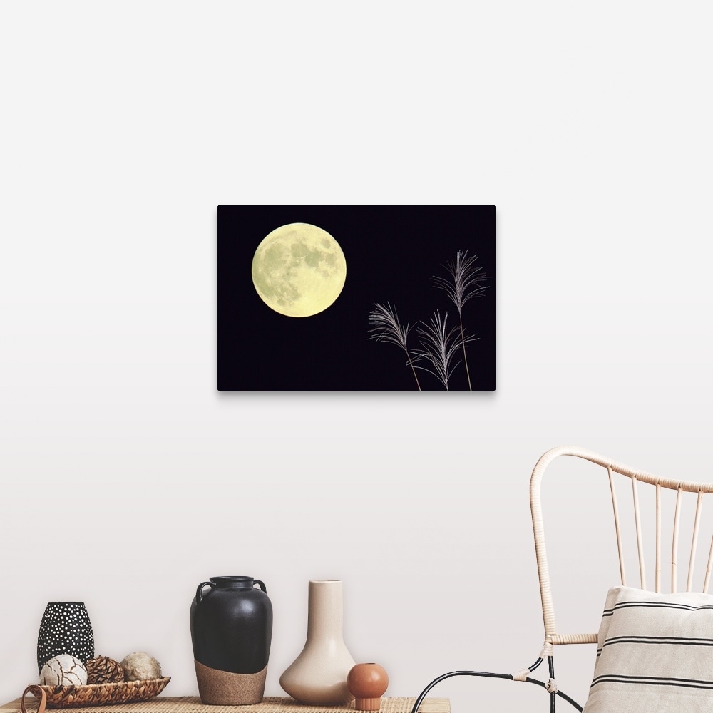 "Japanese pampas grass and the moon" Canvas Wall Art