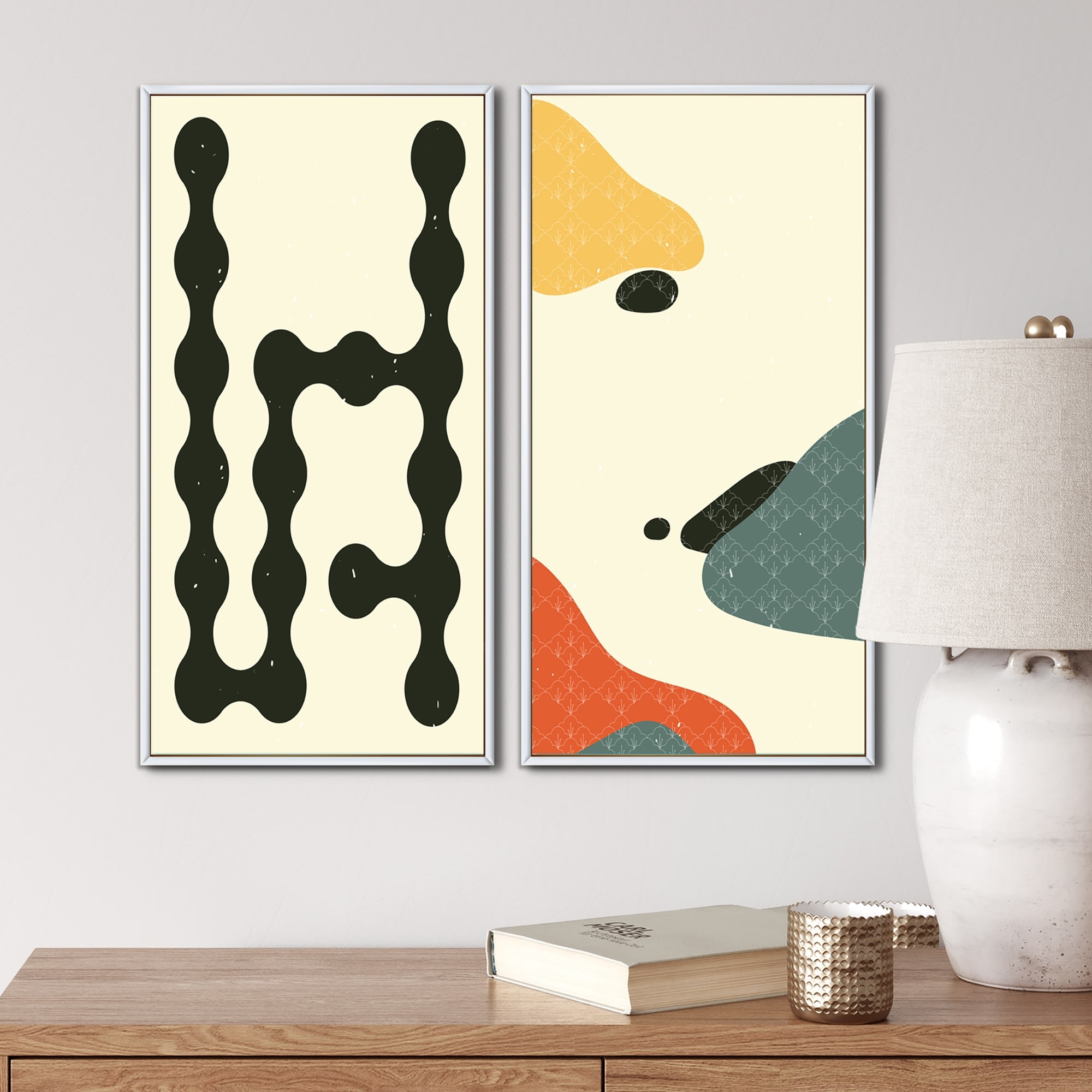 Designart "Japanese Vintage Abstract Retro Designs XII" Geometric Framed Art Set of 2 Pieces