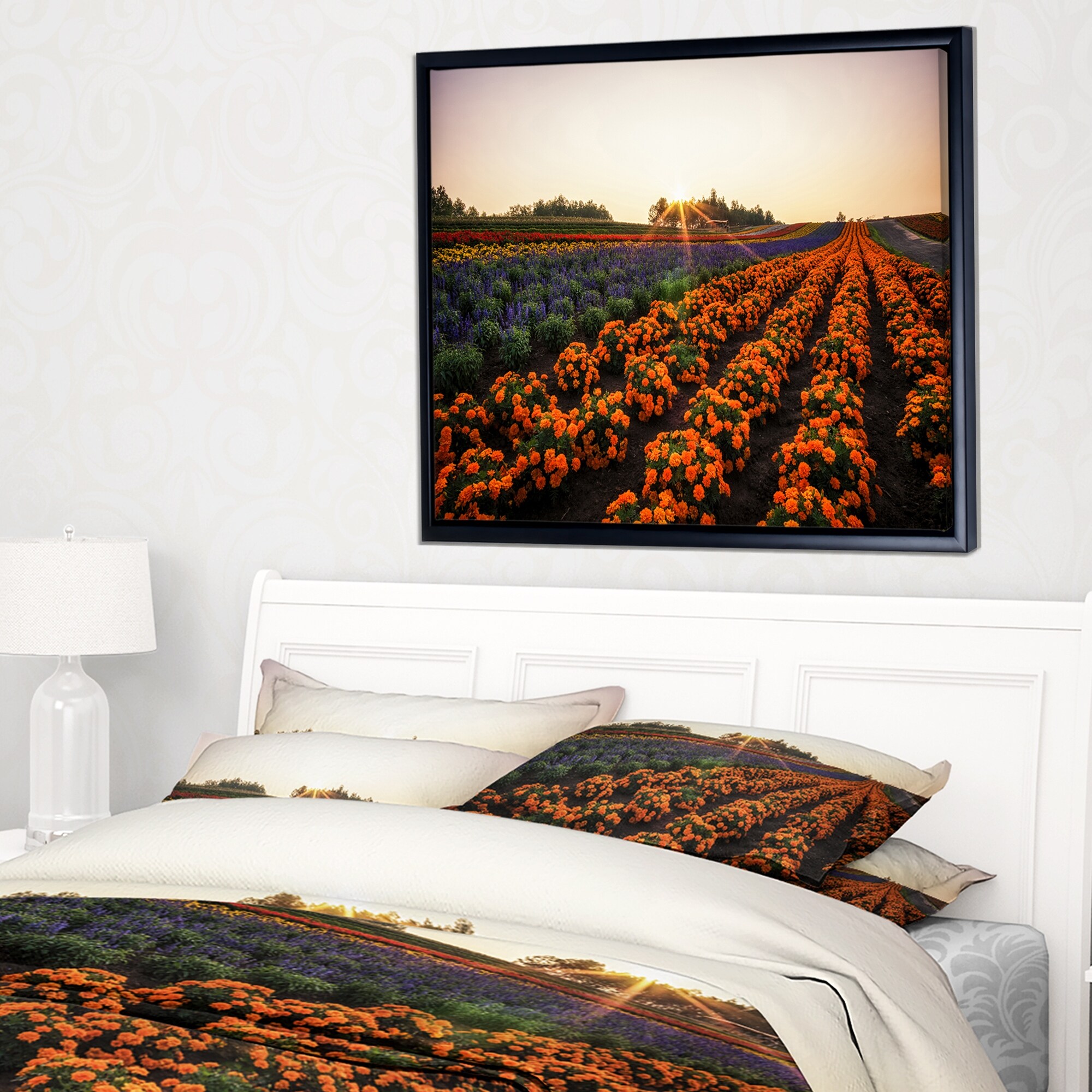 Designart "Beautiful Japanese Flower Farm" Floral Framed Canvas Art Print