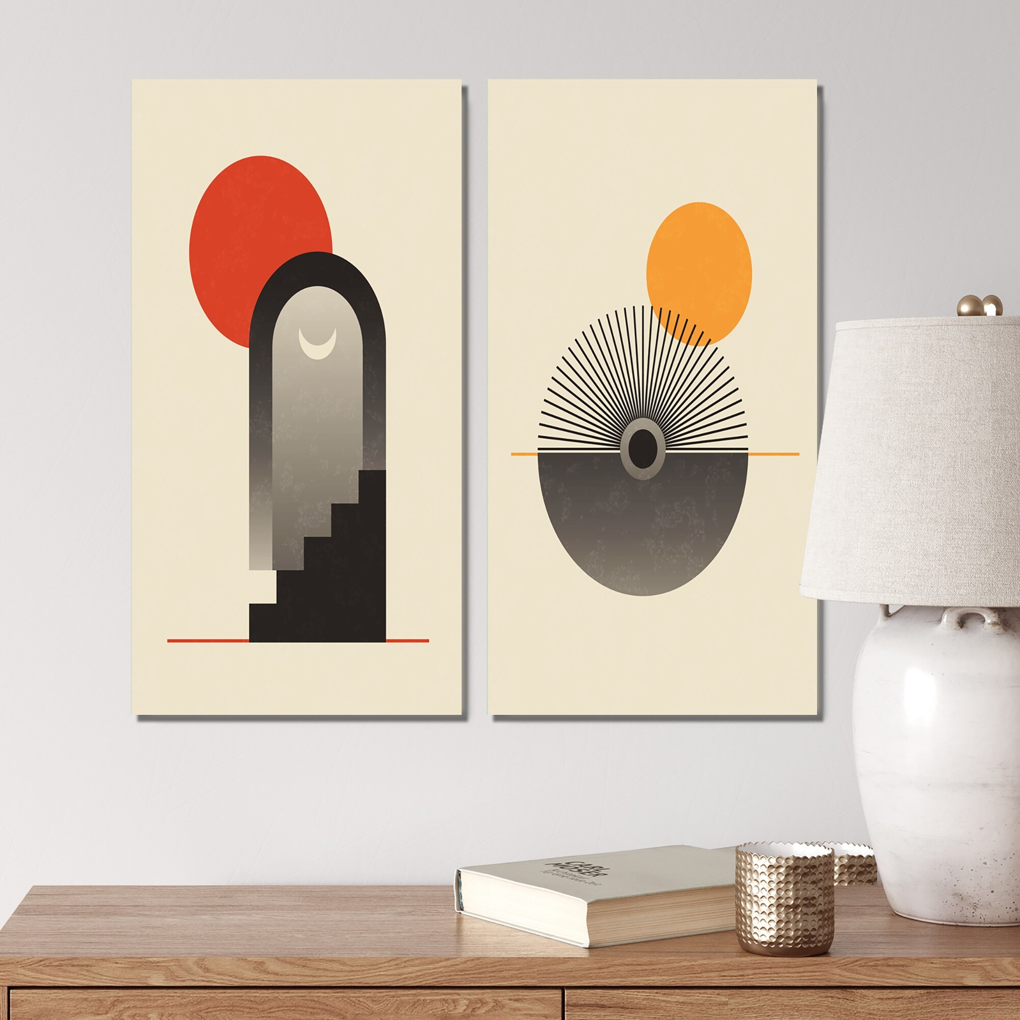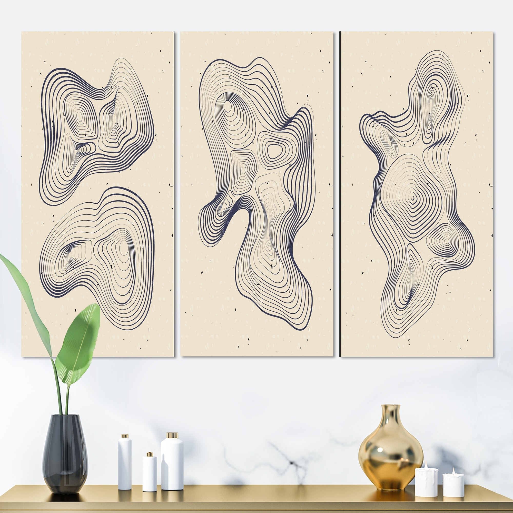 Designart 'Japanese Minimalist Retro Oriental Designs I' Mid-Century Modern Art Set of 3 Pieces