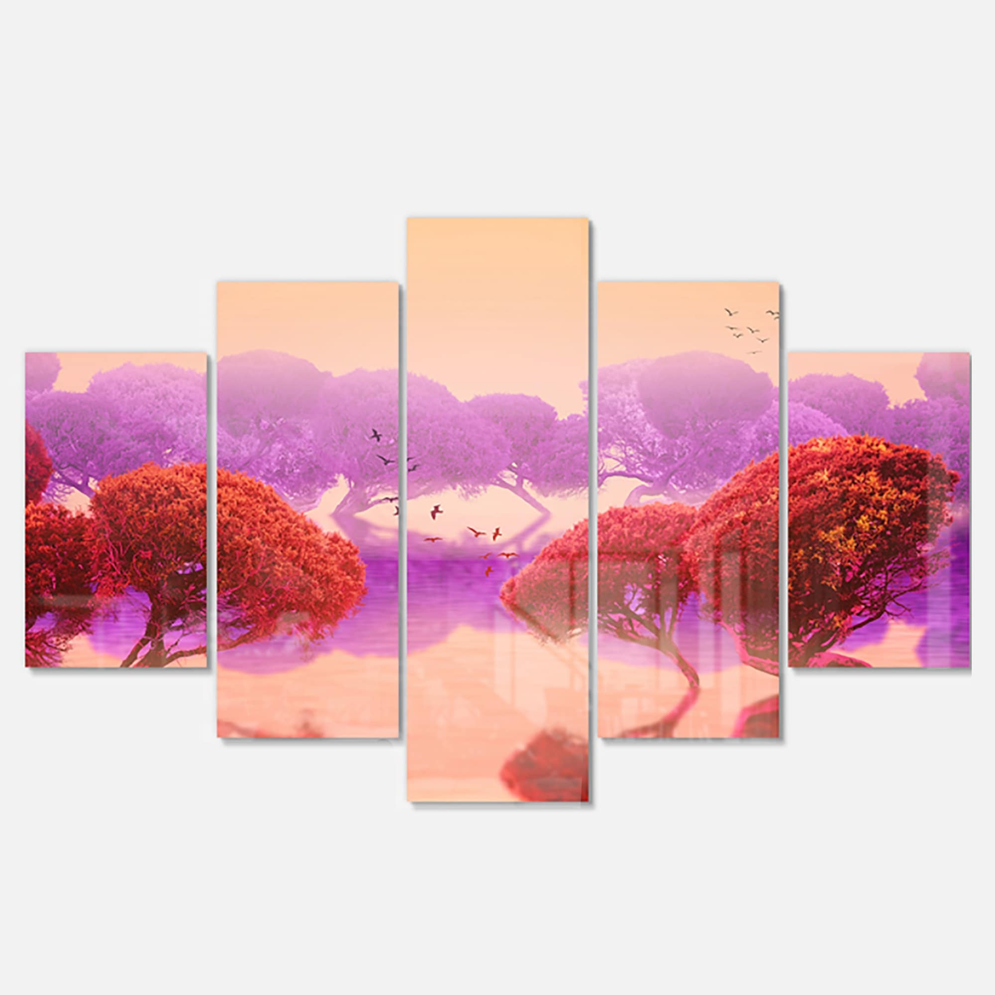 Designart 'Red and Purple Japanese Gardens' Large Landscape Art Glossy Metal Wall Art