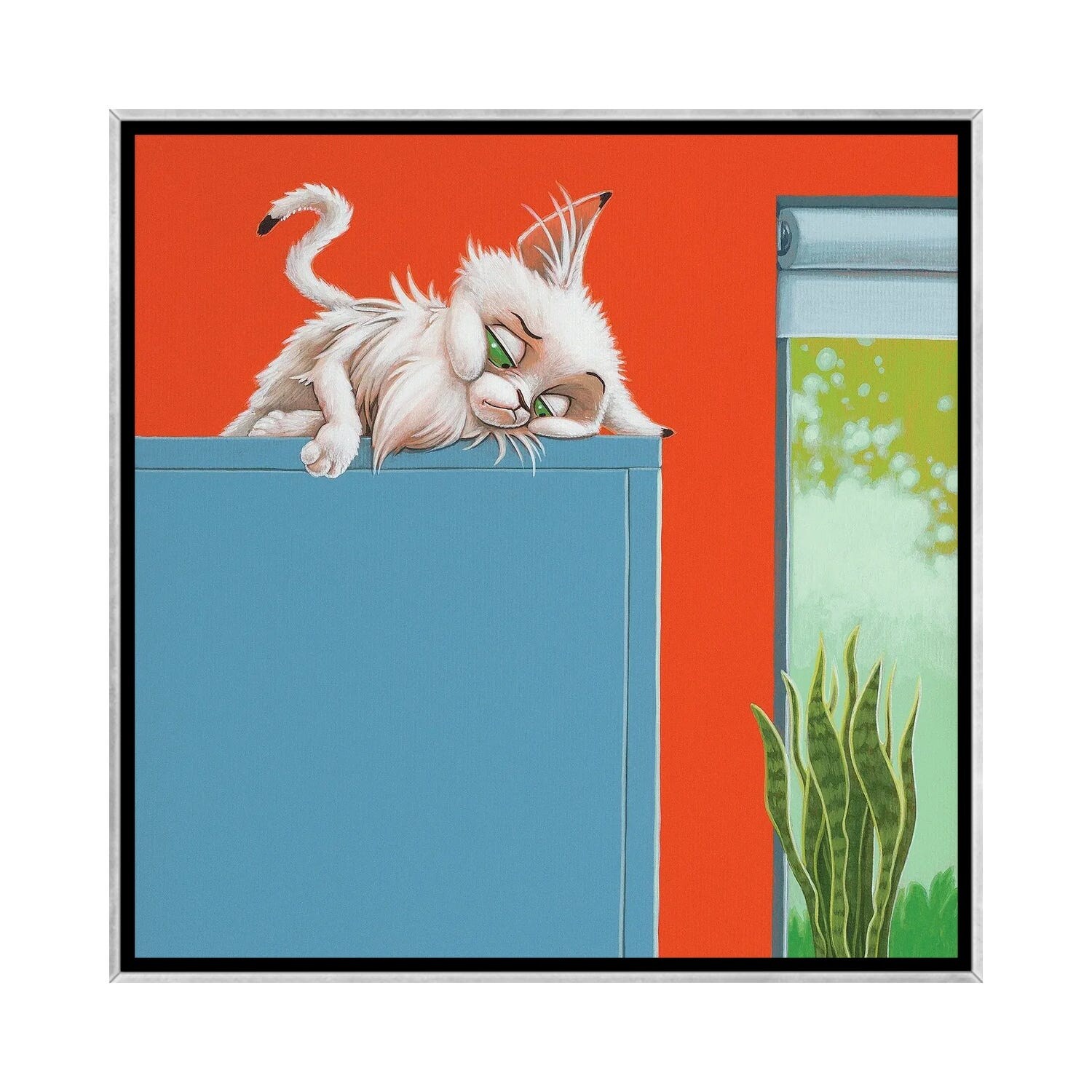 iCanvas "White Cat (Whizzcat)" by Jasper Oostland Framed