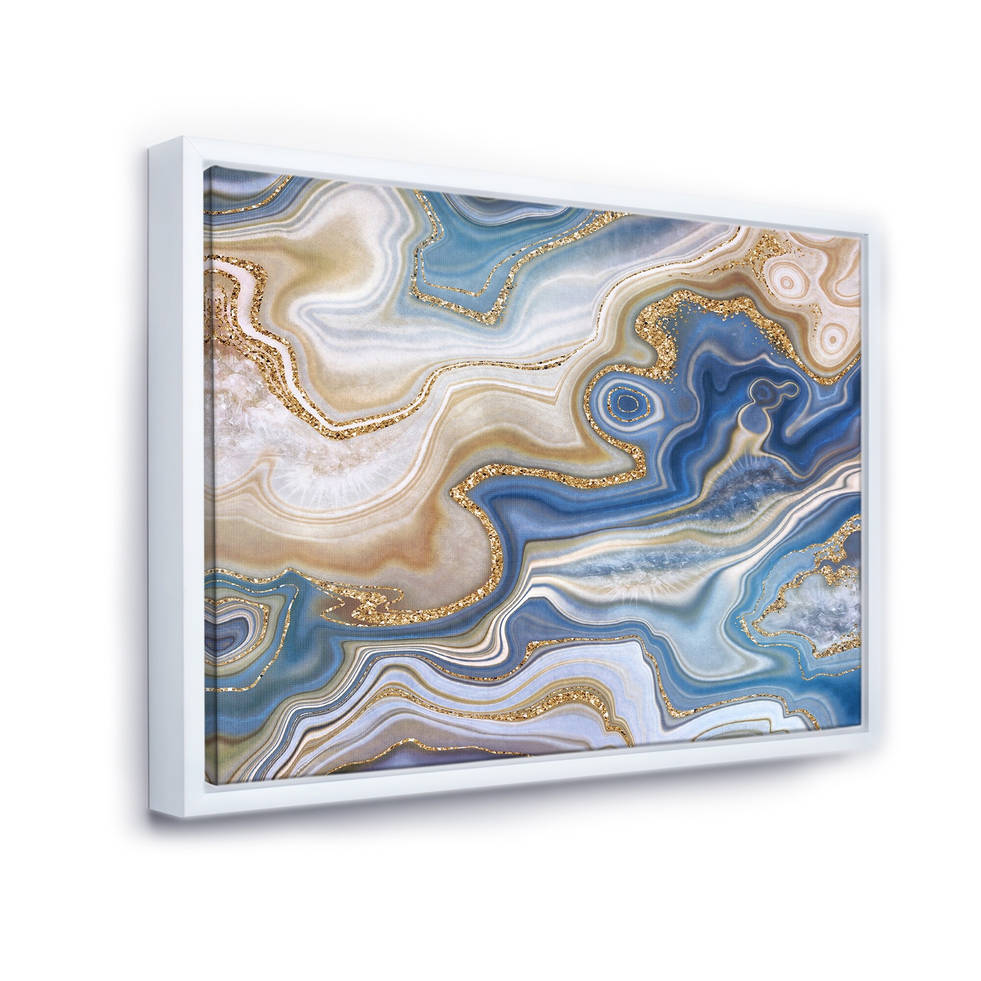 Designart "Ocean Blue Golden Jasper Agate II" Modern Framed Canvas Wall Art Print