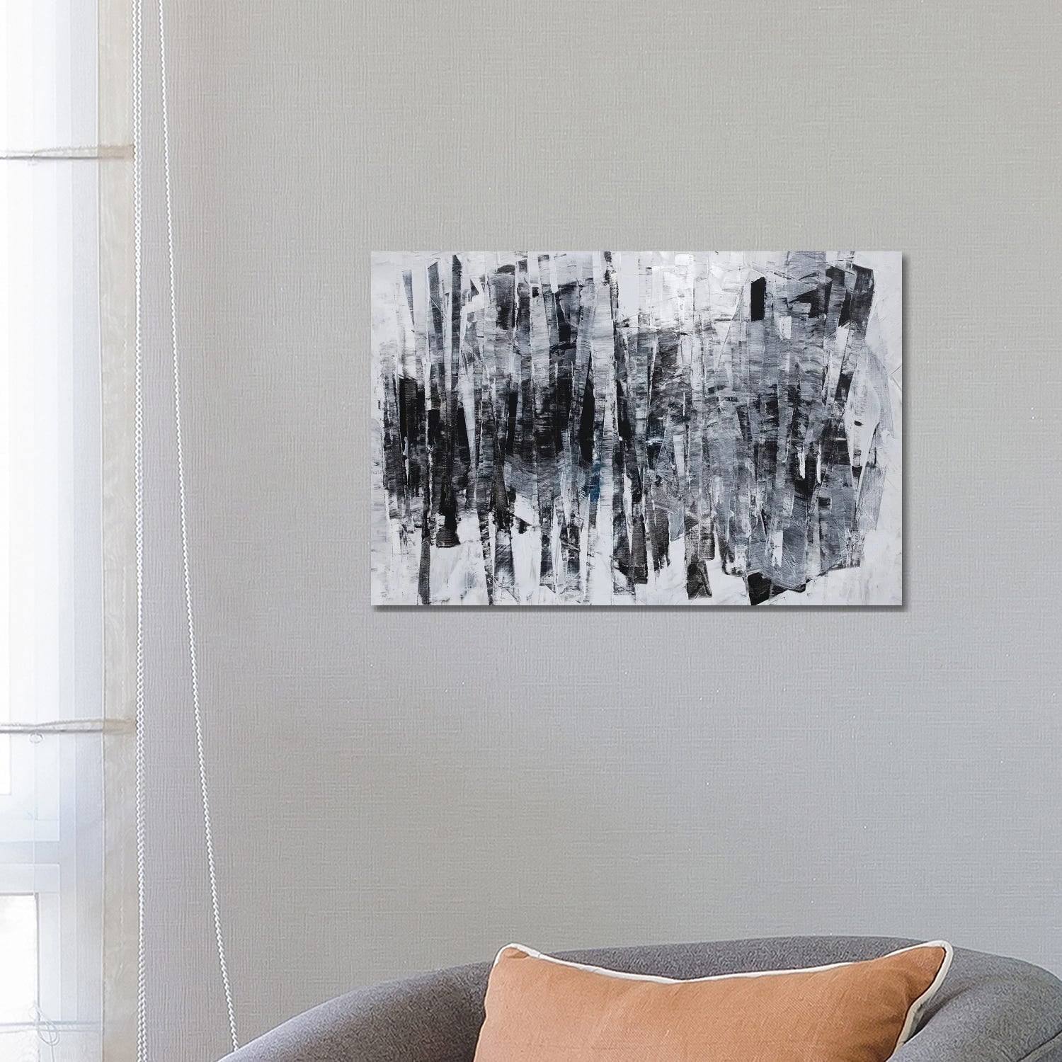 Designart "Jazz Rhythms in Shades of Gray I" Abstract Liquid Ink Framed Canvas Wall Art Print