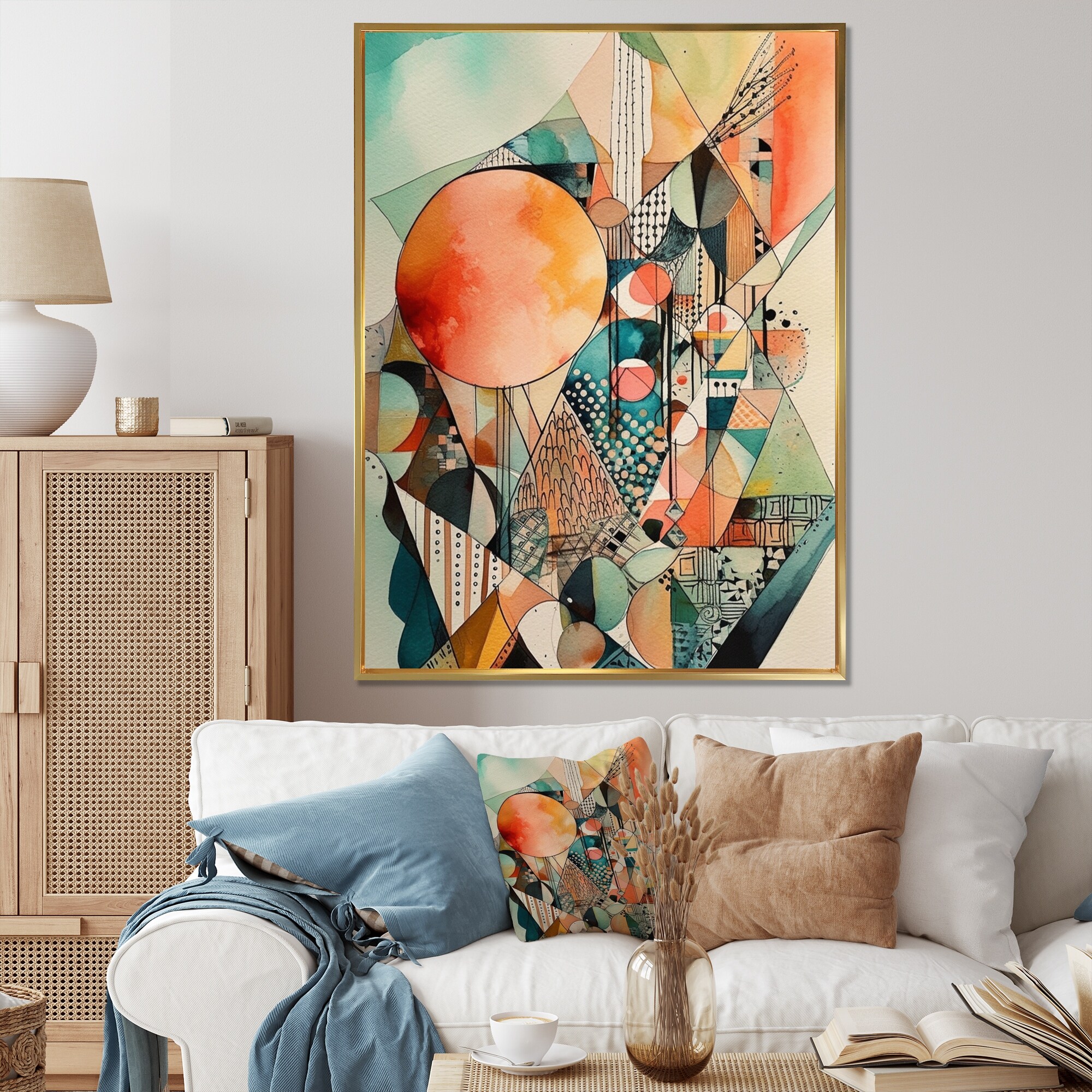 Designart "Joyful Geometric Ii" Abstract Landscape Framed Canvas Wall Art