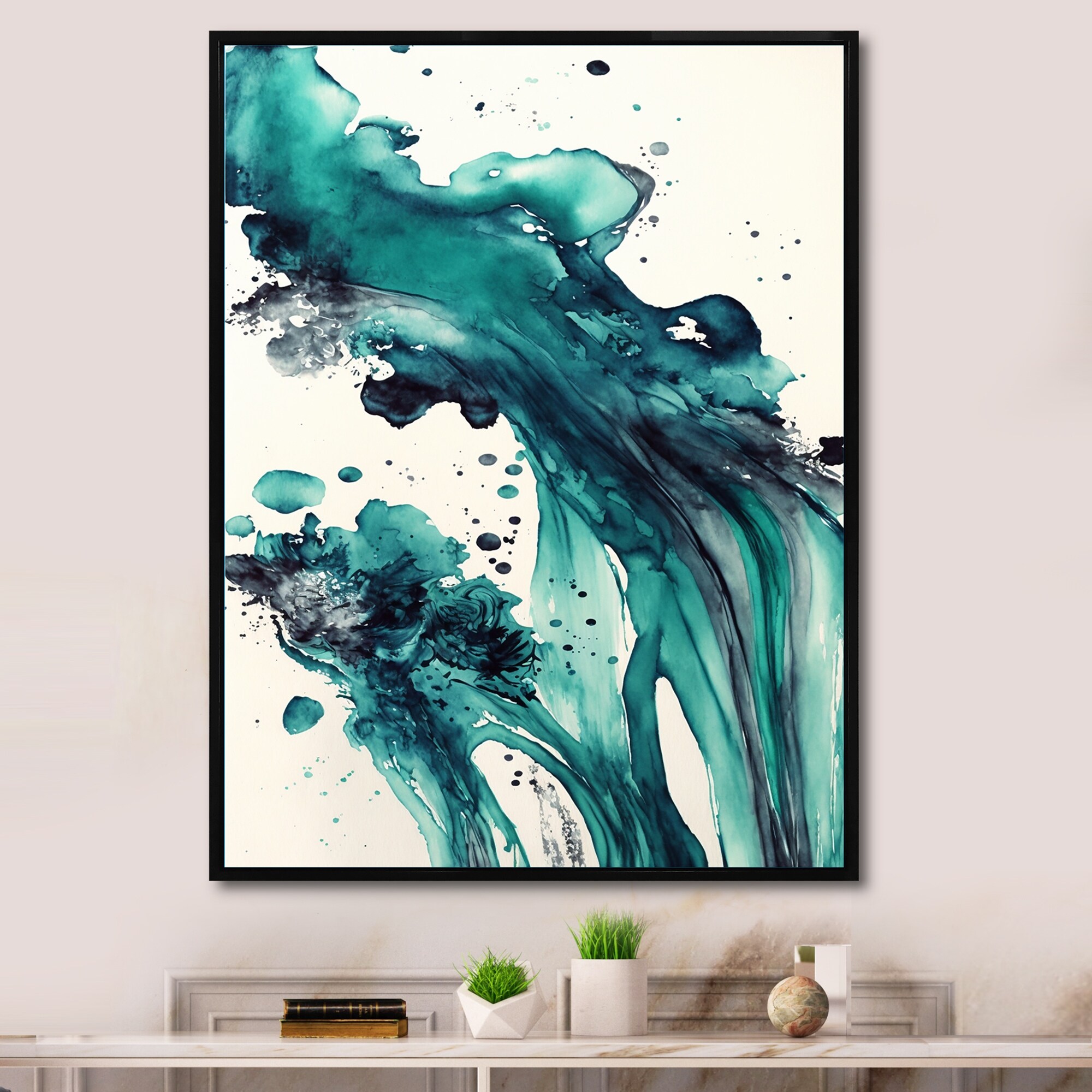 Designart "Tropical Turquoise Joyfulness II" Abstract Liquid Ink Framed Canvas Wall Art Print