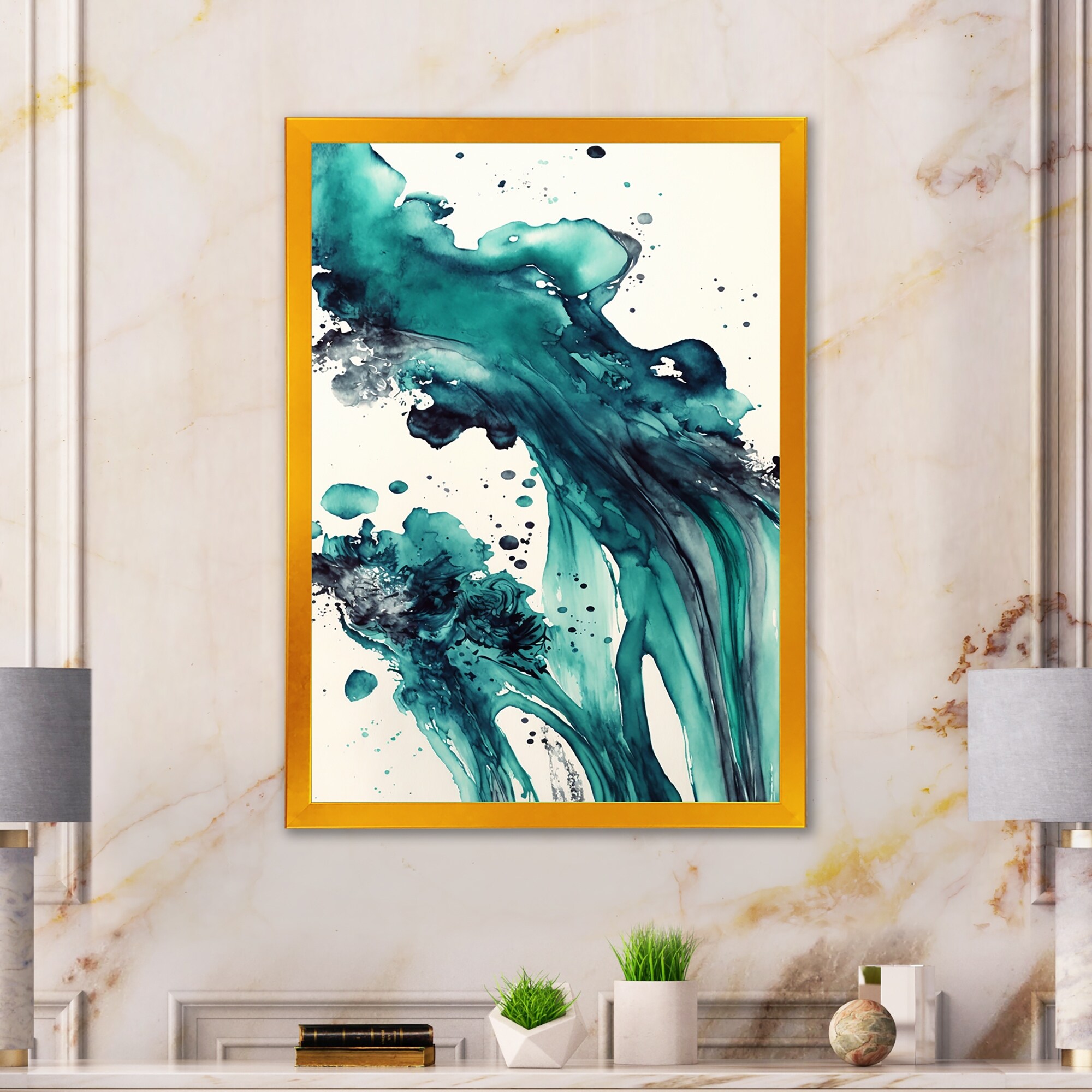 Designart "Tropical Turquoise Joyfulness II" Abstract Liquid Ink Framed Art Print