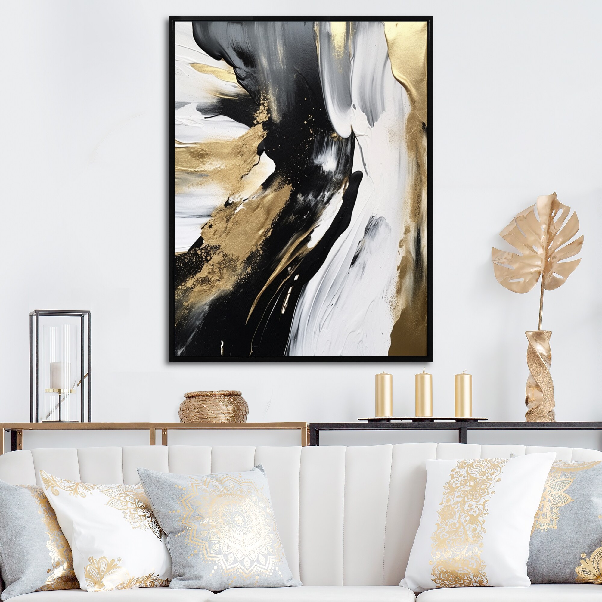 Designart "Minimal Joy in Black And Gold VII" Abstract Painting Framed Canvas Print