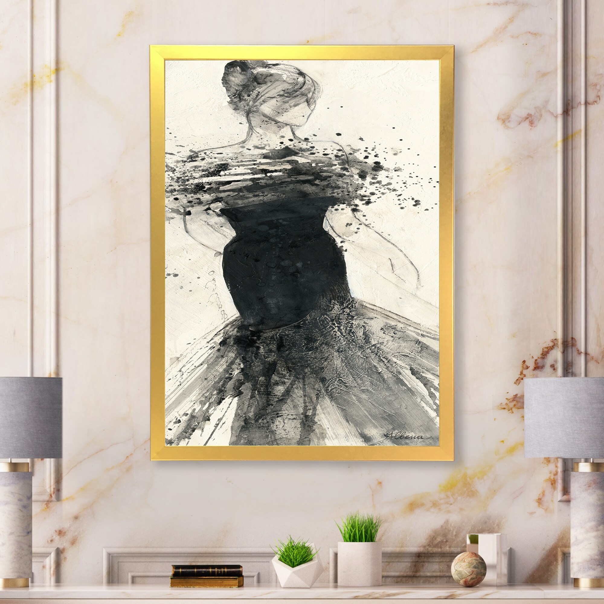 Designart "Glam Dancing I" Fashion Figures Premium Framed Art Print