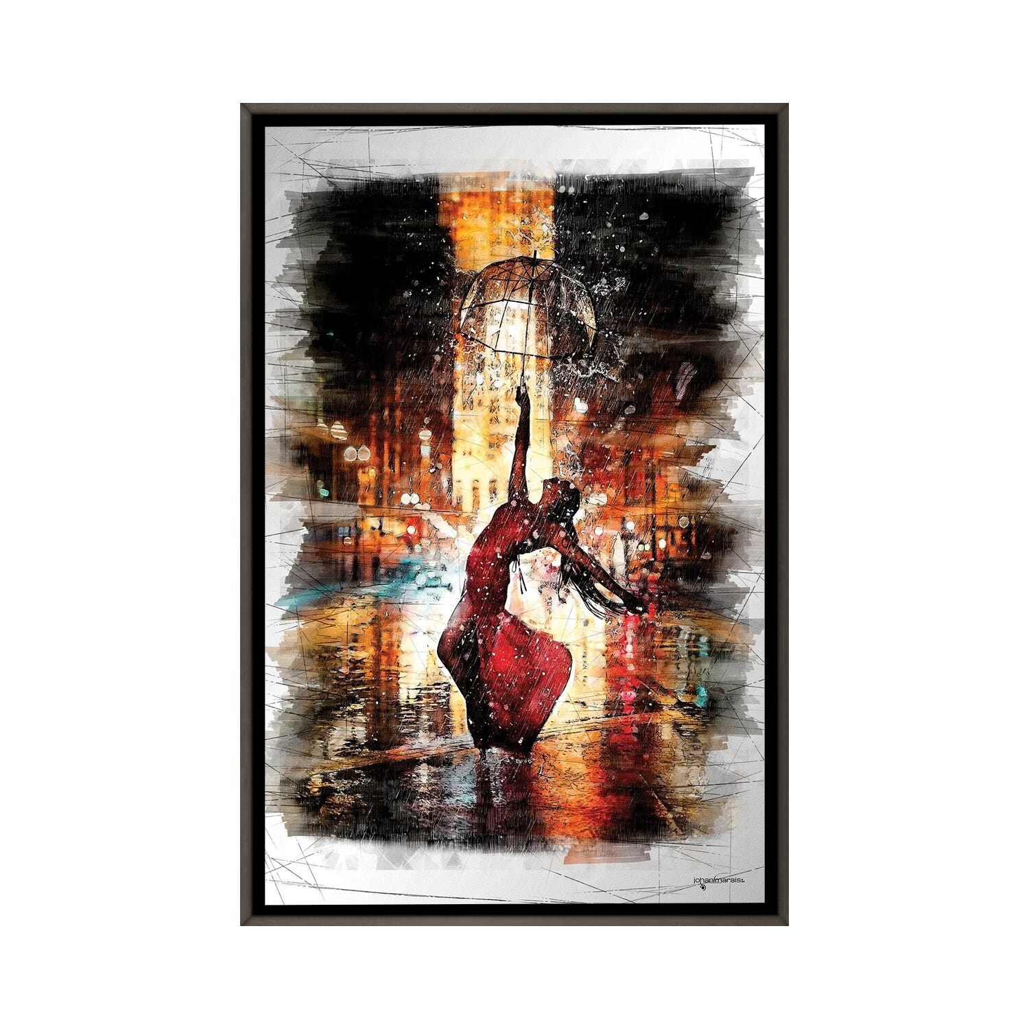 iCanvas "Rainy Night Dance" by Johan Marais Framed