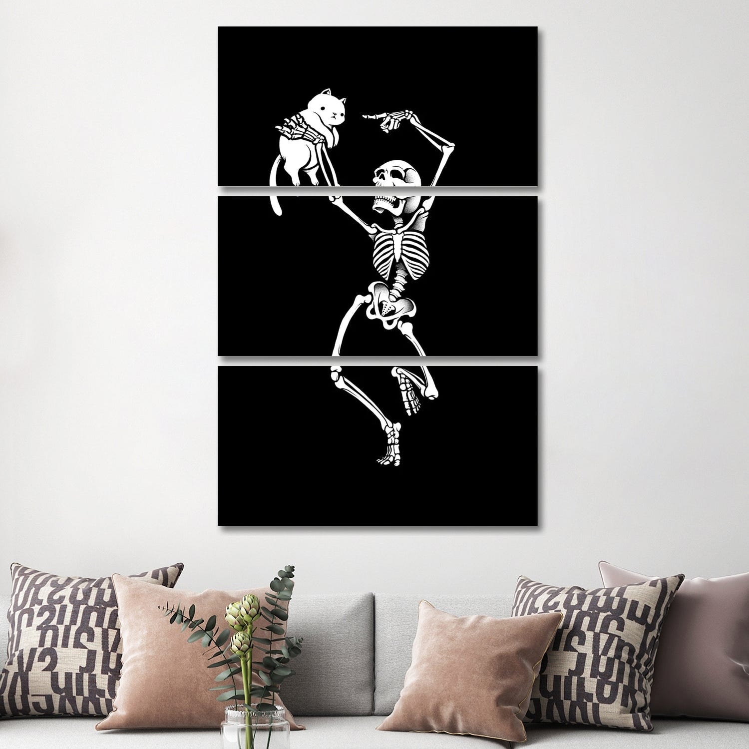 iCanvas "Dancing Skeleton With a Cat" by Tobias Fonseca 3-Piece Wall Art Set