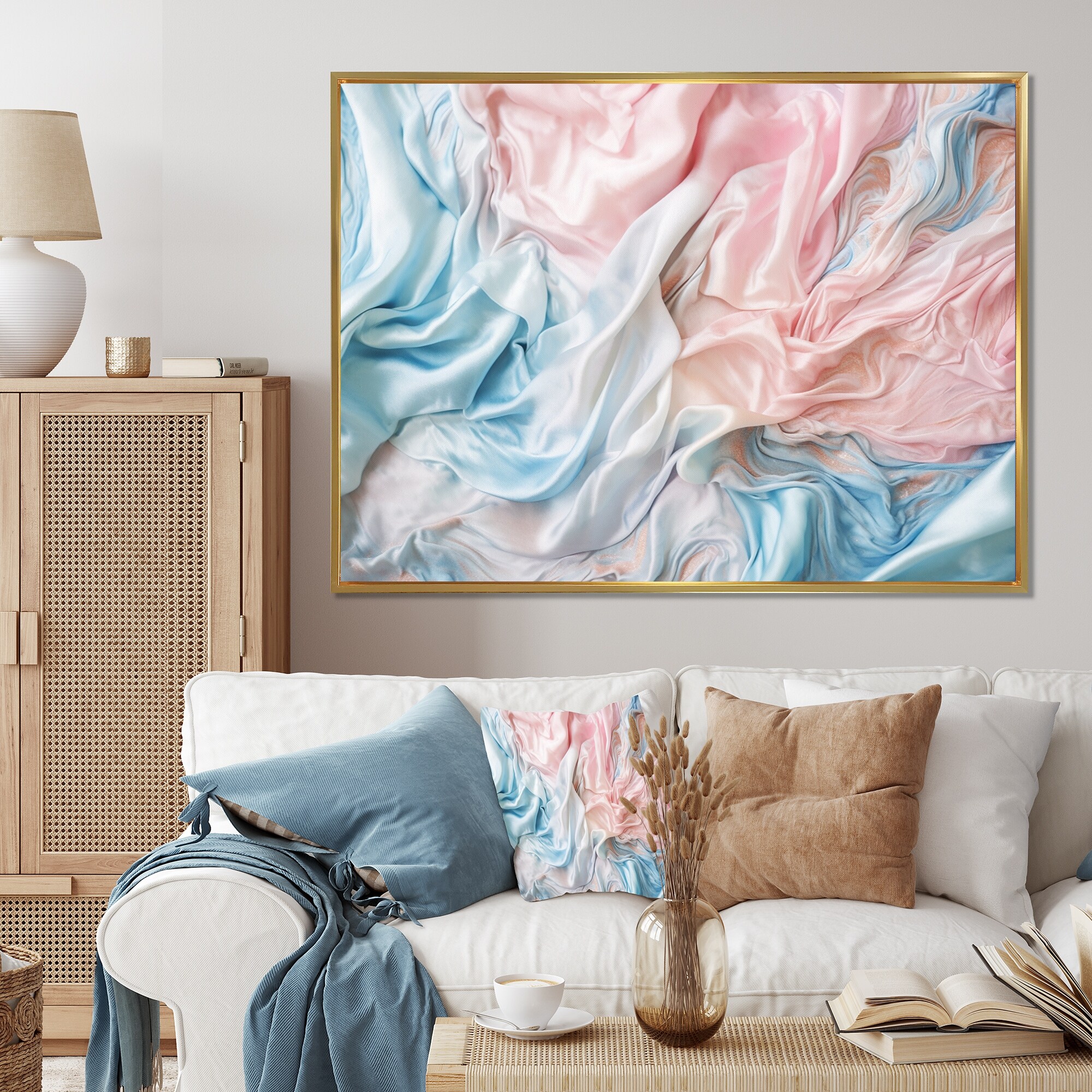 Designart "Pink Blue Dancing Colors I" Abstract Marble Framed Canvas Prints