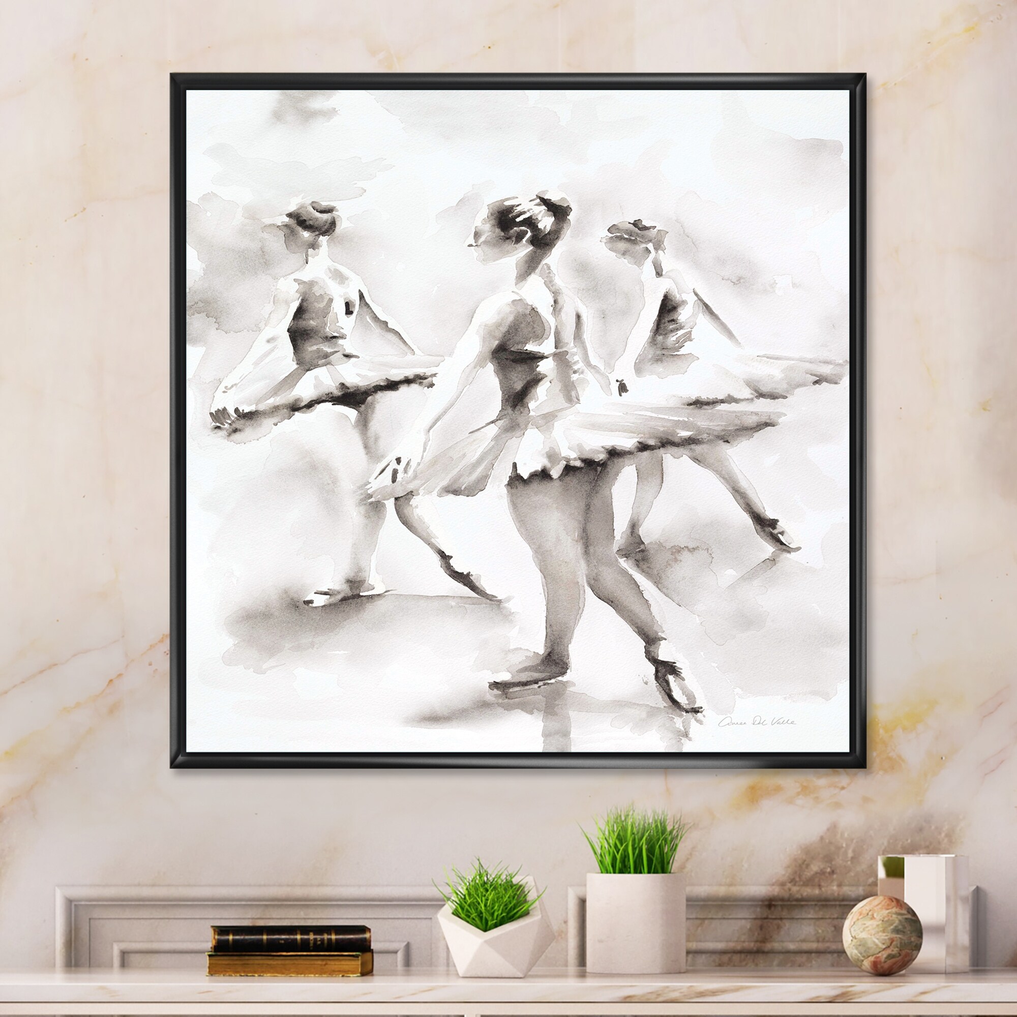 Designart "watercolors Ballerinas Dance I" French Country Framed Canvas