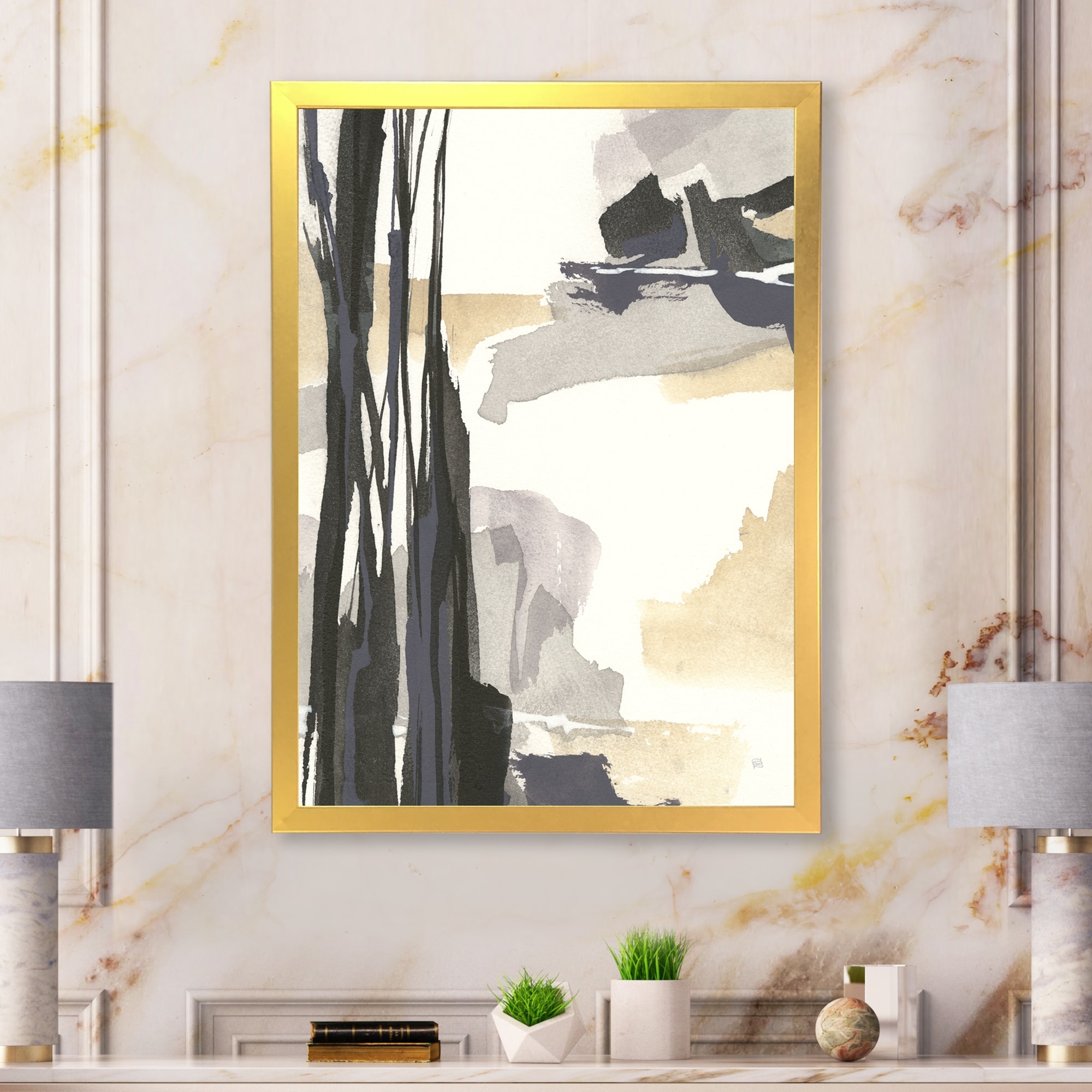Designart "Glam Dancing shape IV" Modern & Contemporary Framed Canvas