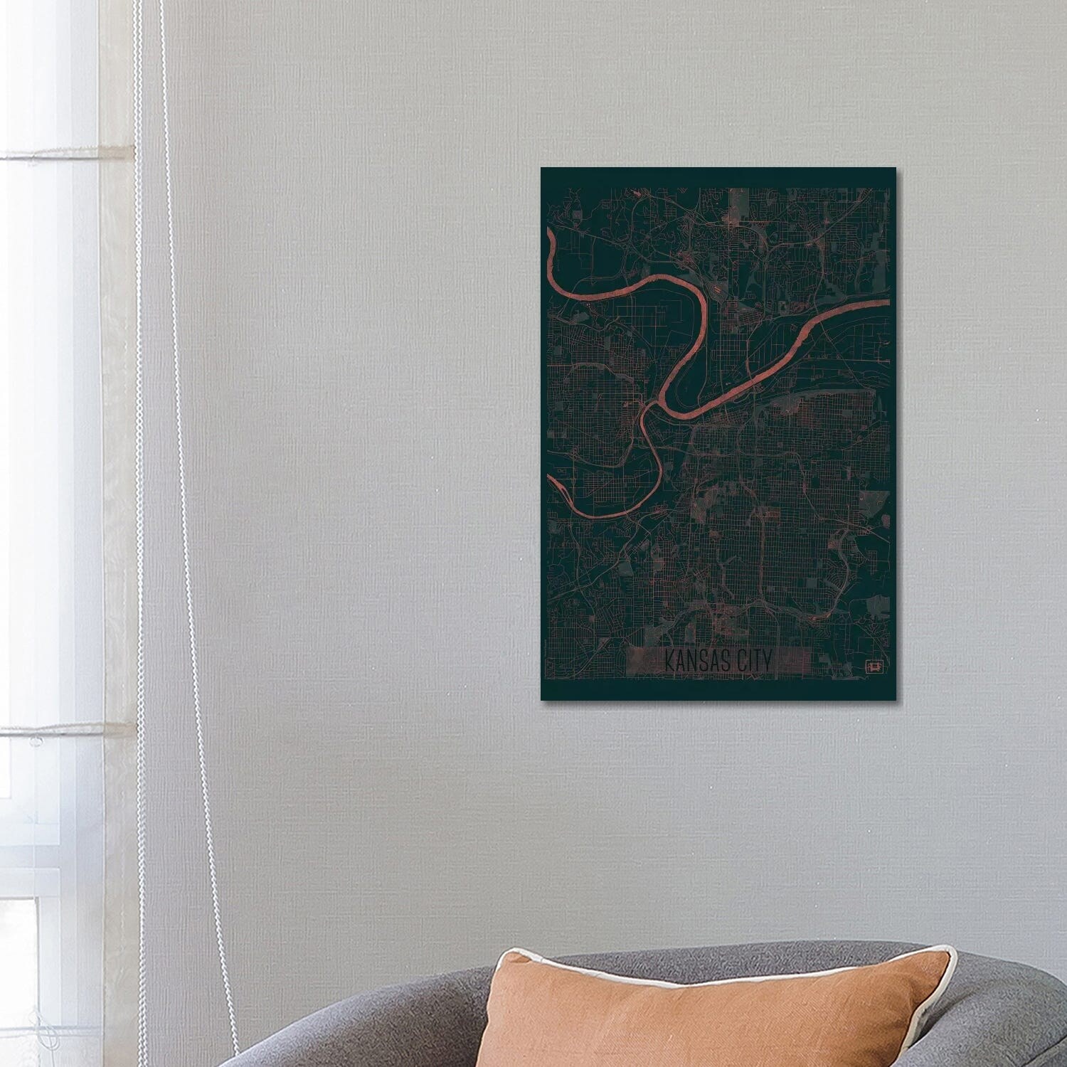 iCanvas "Kansas City Map Black White Grey Style" by WallDecorAddict