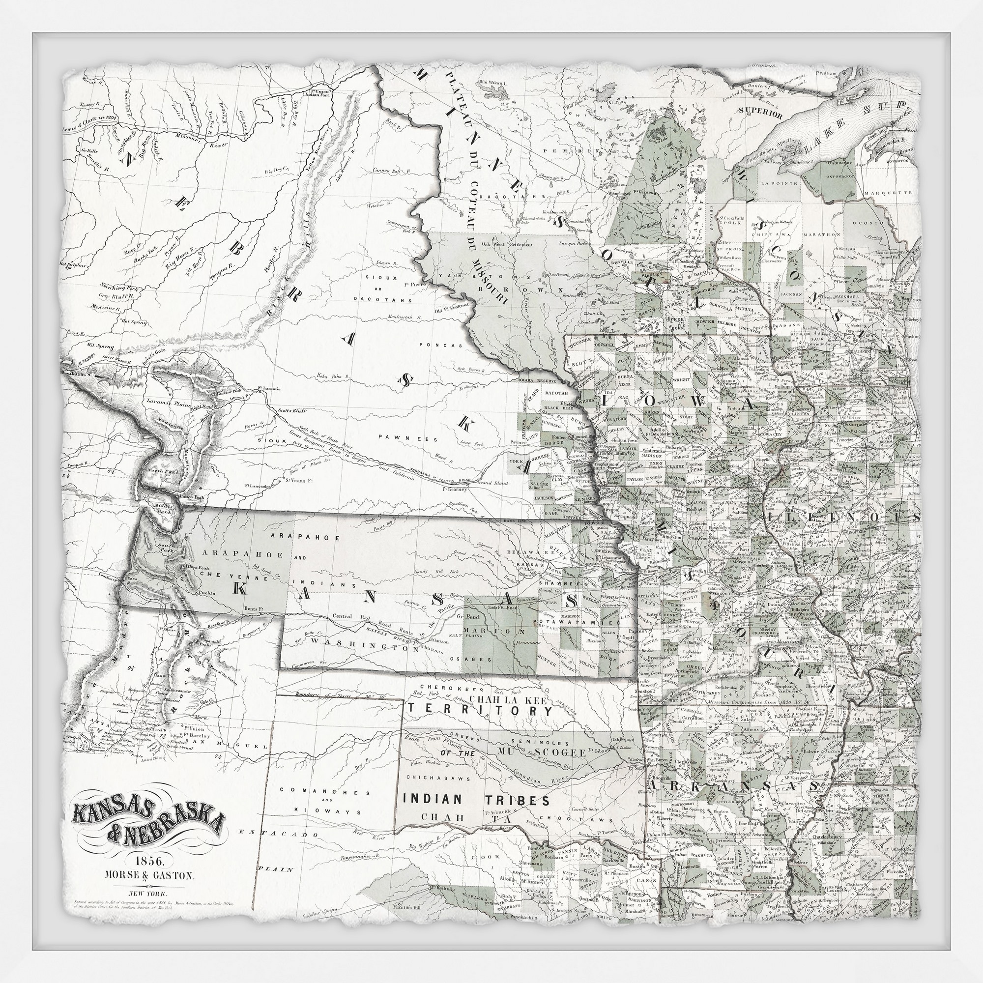 'Vintage Map of Nebraska and Kansas' Framed Painting Print