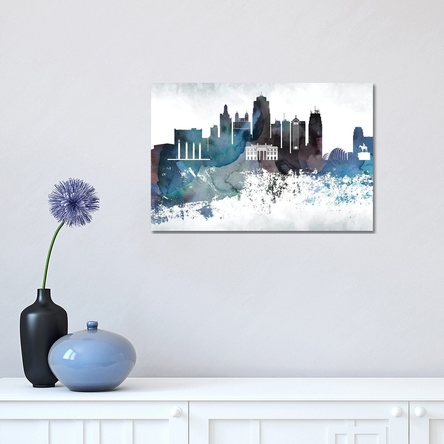 iCanvas "Kansas City Bluish Skylines" by WallDecorAddict Canvas Print