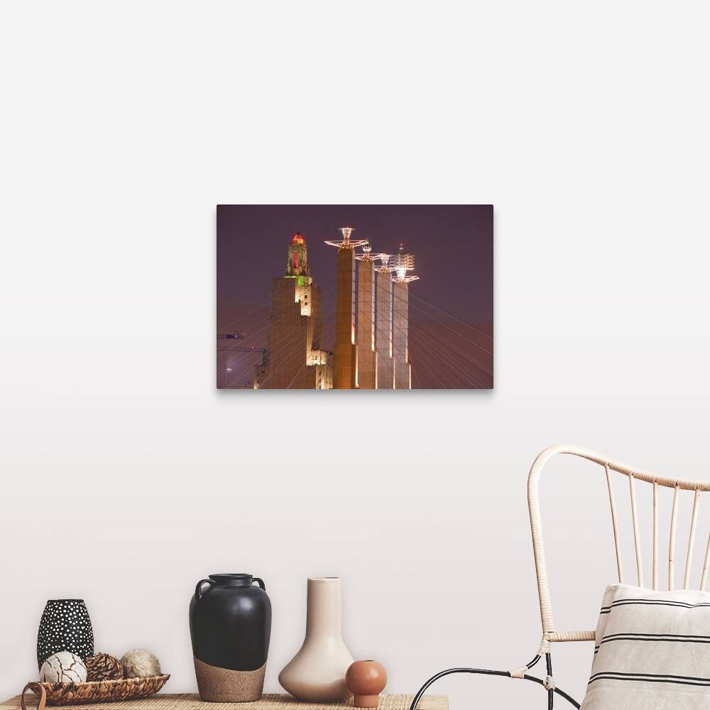 "Low angle view of cables attached to towers, Convention Center, Kansas City, Missouri" Canvas Wall Art