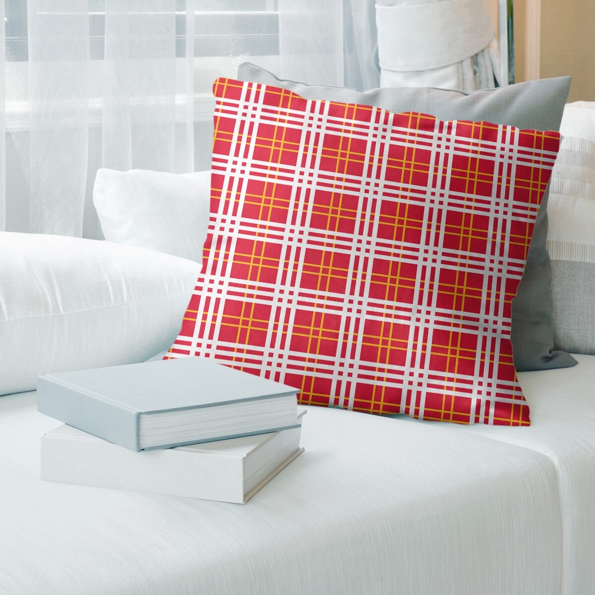 Kansas City Football Luxury Plaid Accent Pillow-Spun Polyester