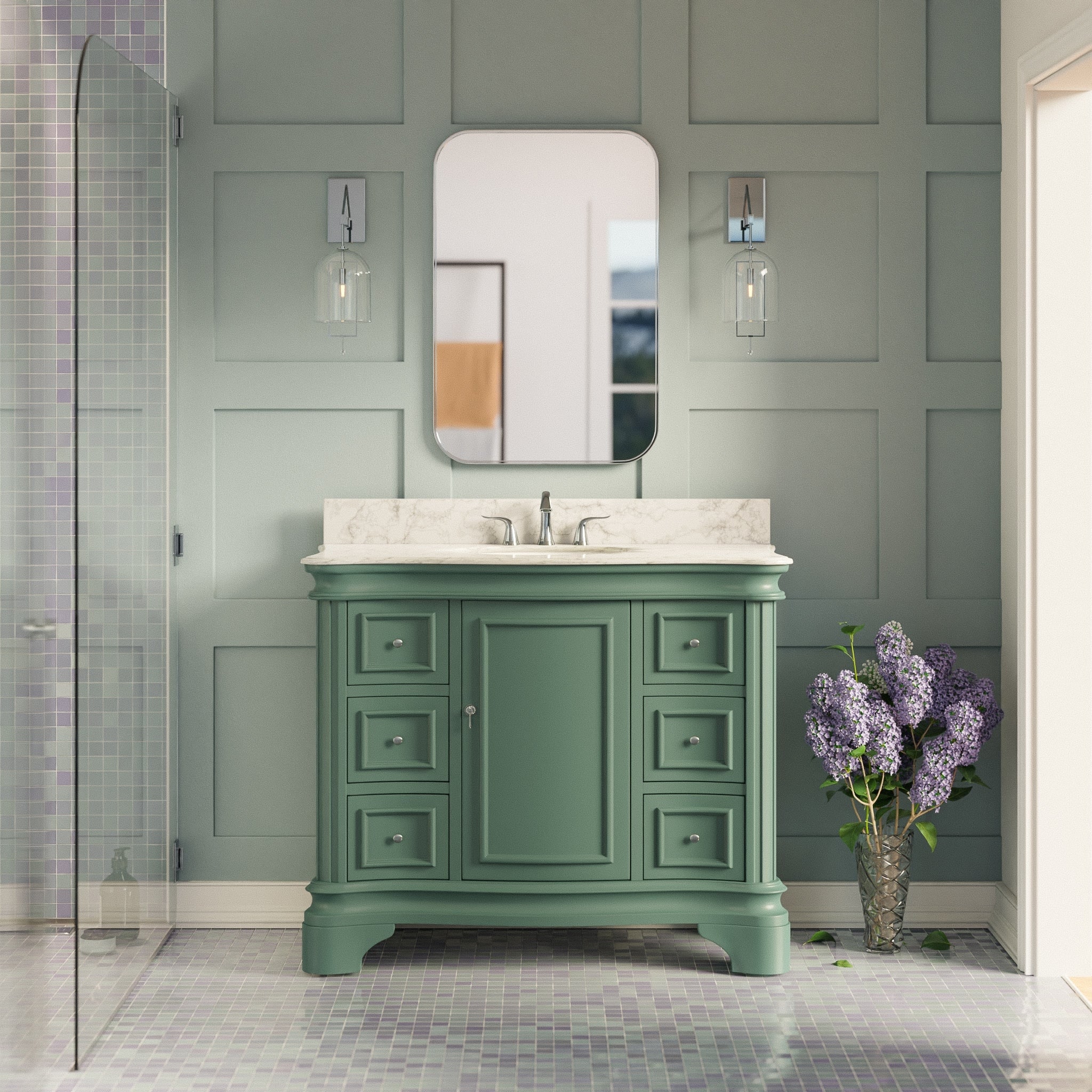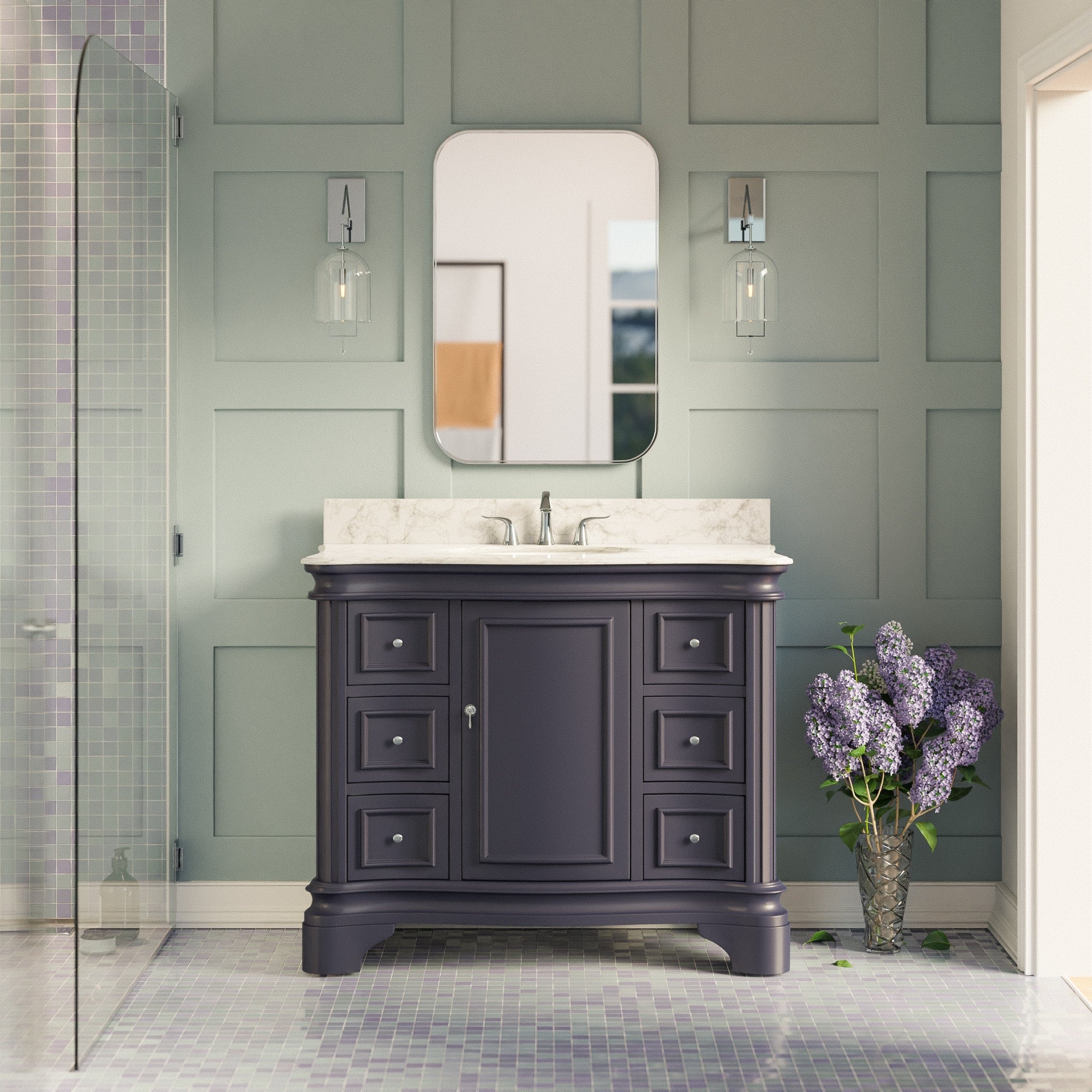 KitchenBathCollection Parisian 42" Bathroom Vanity with Carrara Marble Top