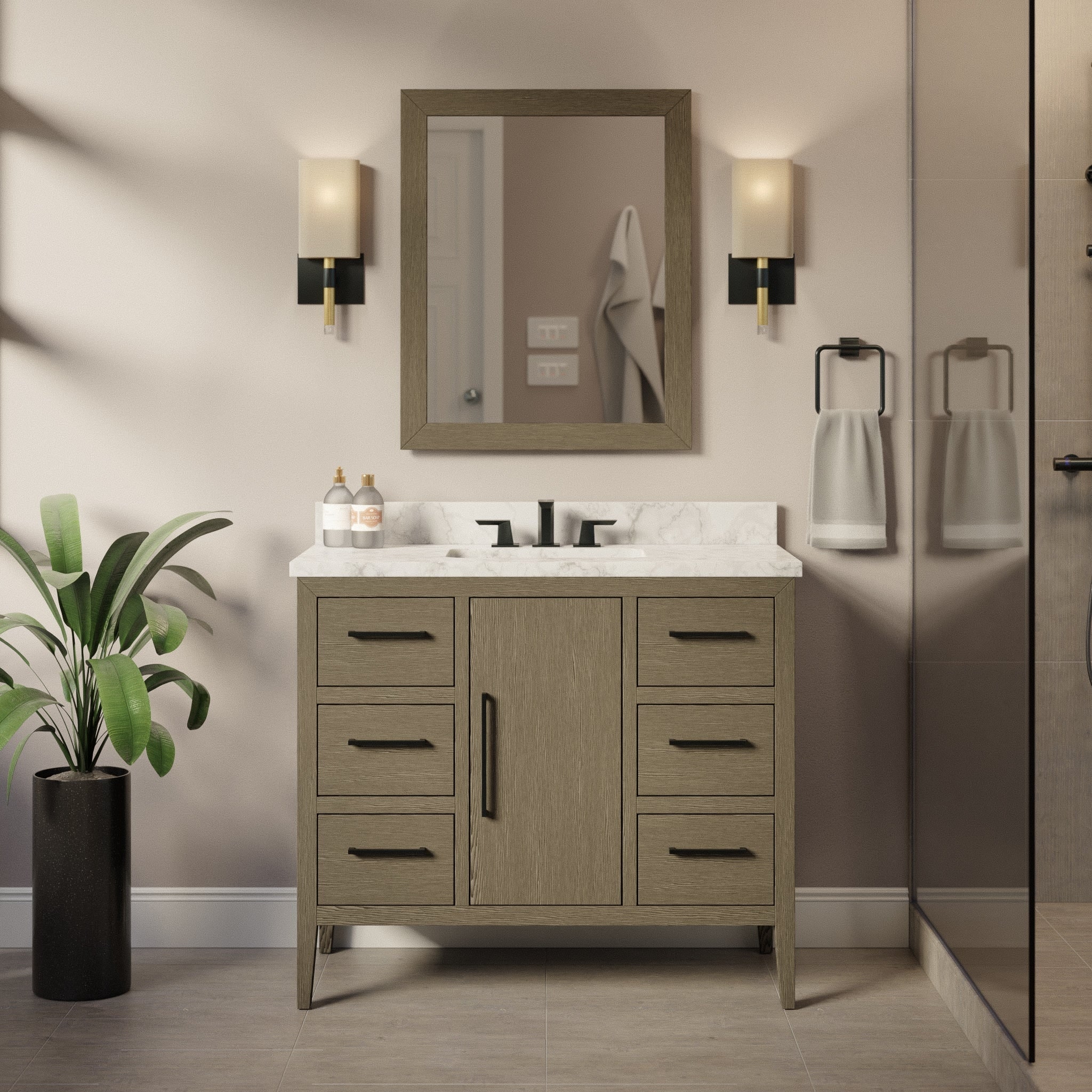 KitchenBathCollection Lakeshore 36" Bathroom Vanity with Engineered Carrara Top