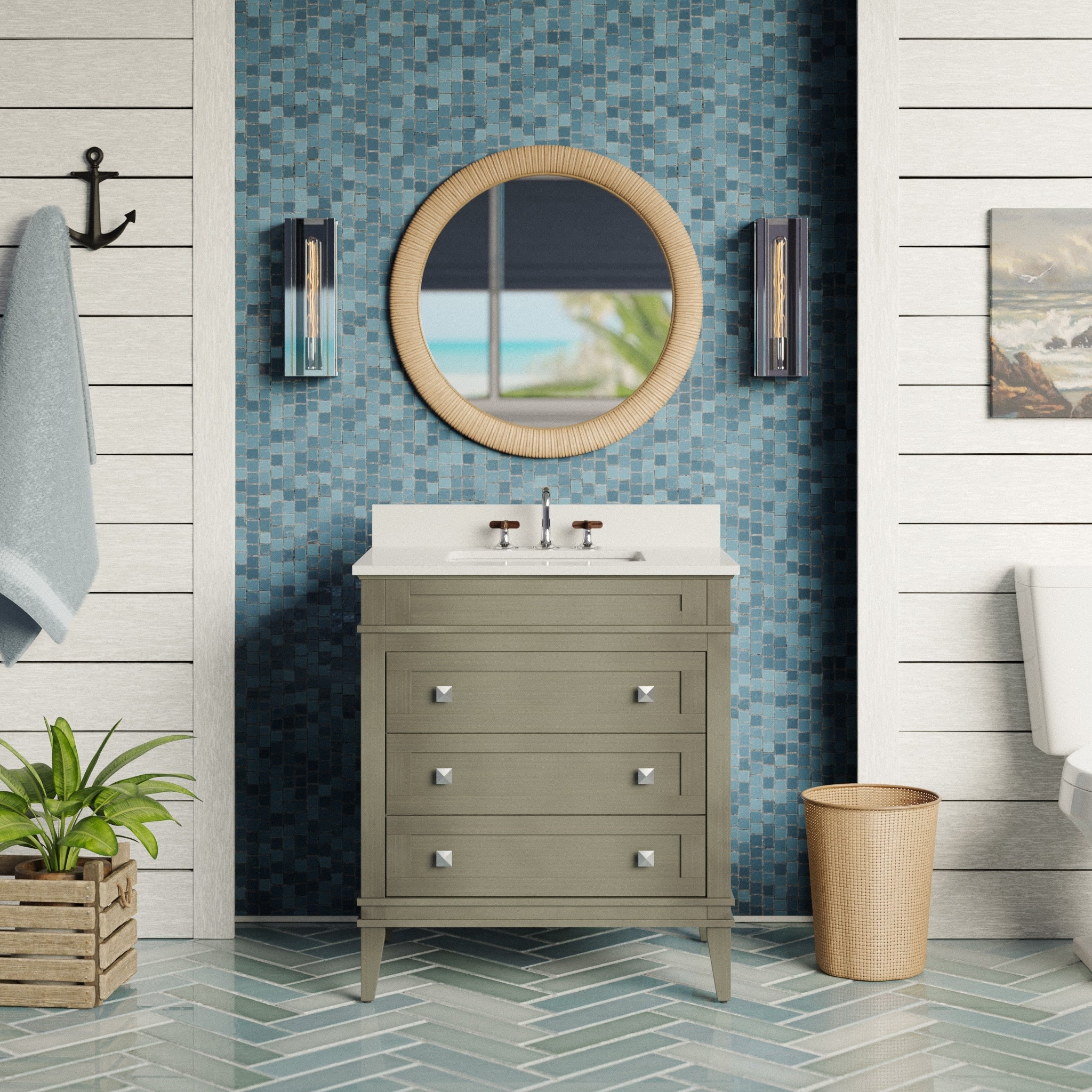 KitchenBathCollection Nantucket 30" Bathroom Vanity with Quartz Top