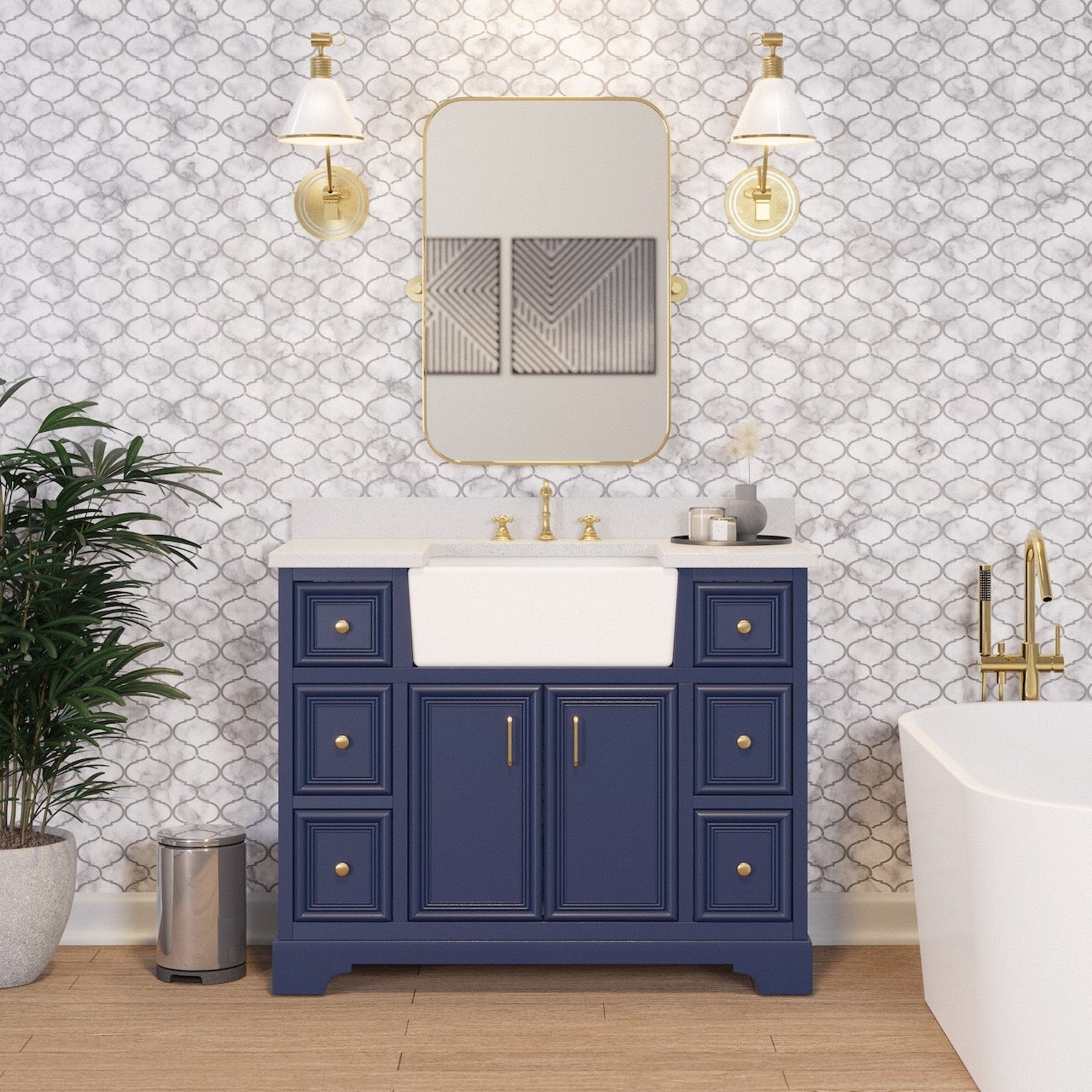 KitchenBathCollection Zelda 48" Farmhouse Bathroom Vanity with Quartz Top