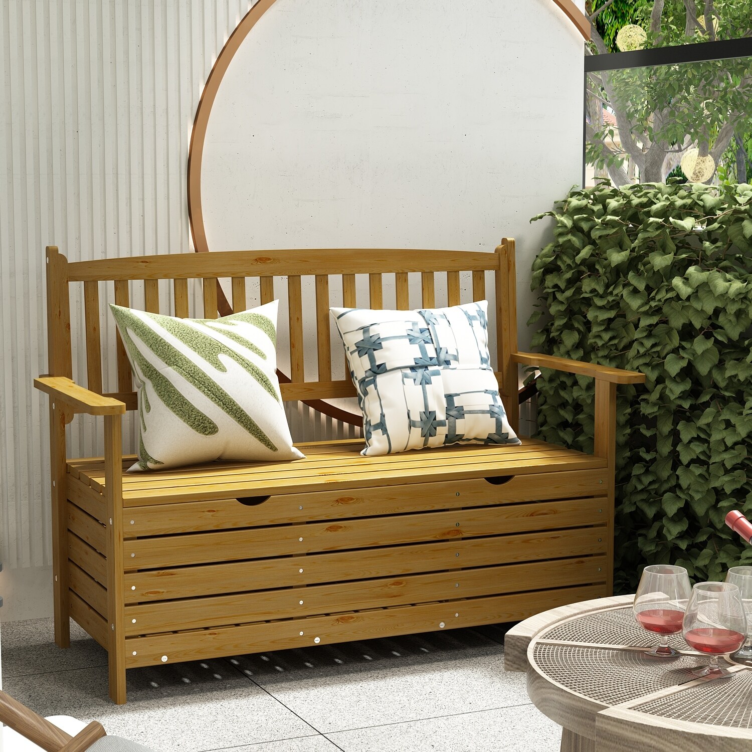 44.9"W Wooden Outdoor Storage Bench Large Entryway Storage Bench