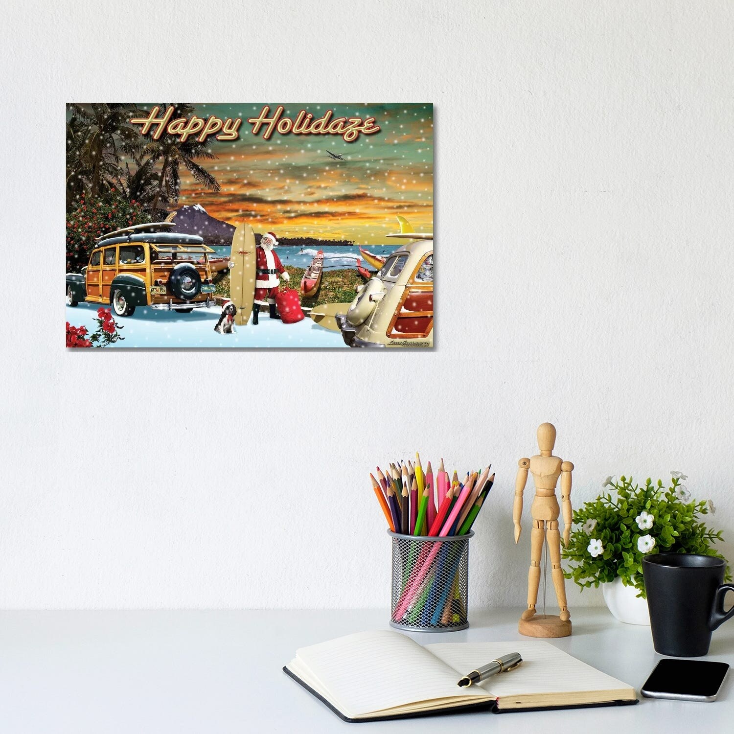 iCanvas "Surfin' With Santa" by Larry Grossman Canvas Print