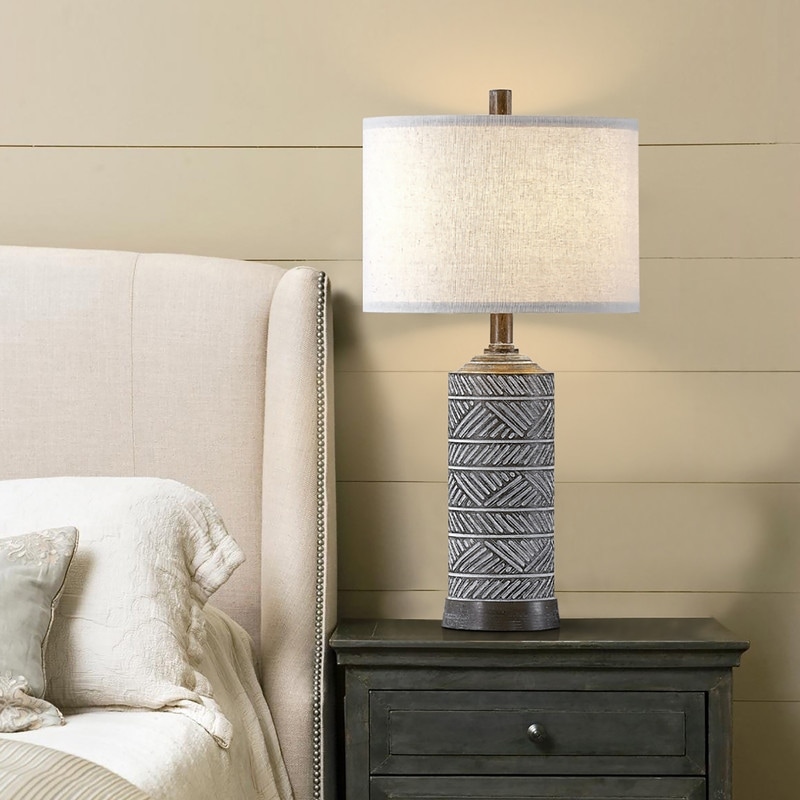 KAWOTI 23inch Distressed Wood-look Table Lamp Set with Bulbs(set of 2) - W12" * H23.25"