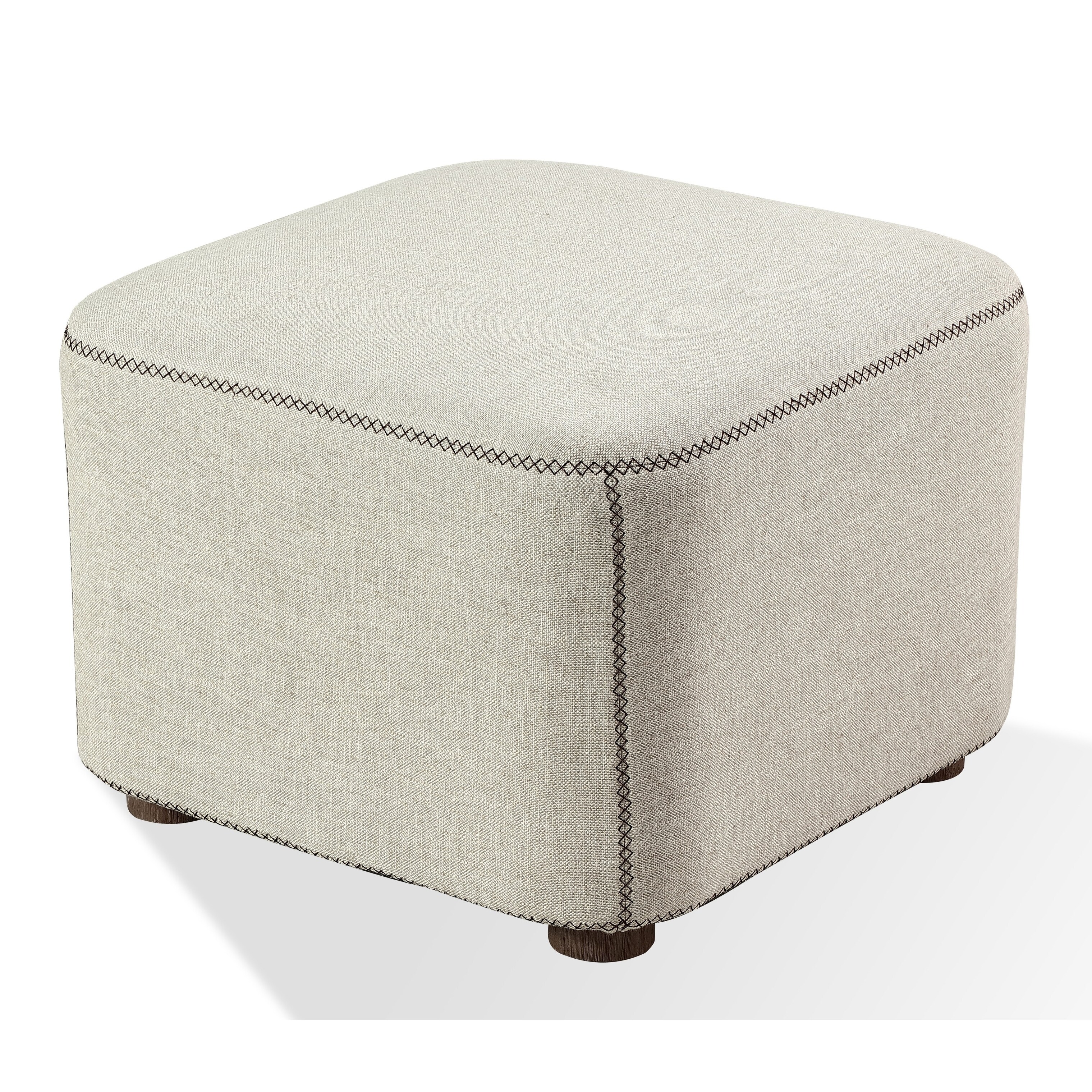 Louis Upholstered Ottoman in Natural Linen - 16" x 22.8" x 22"