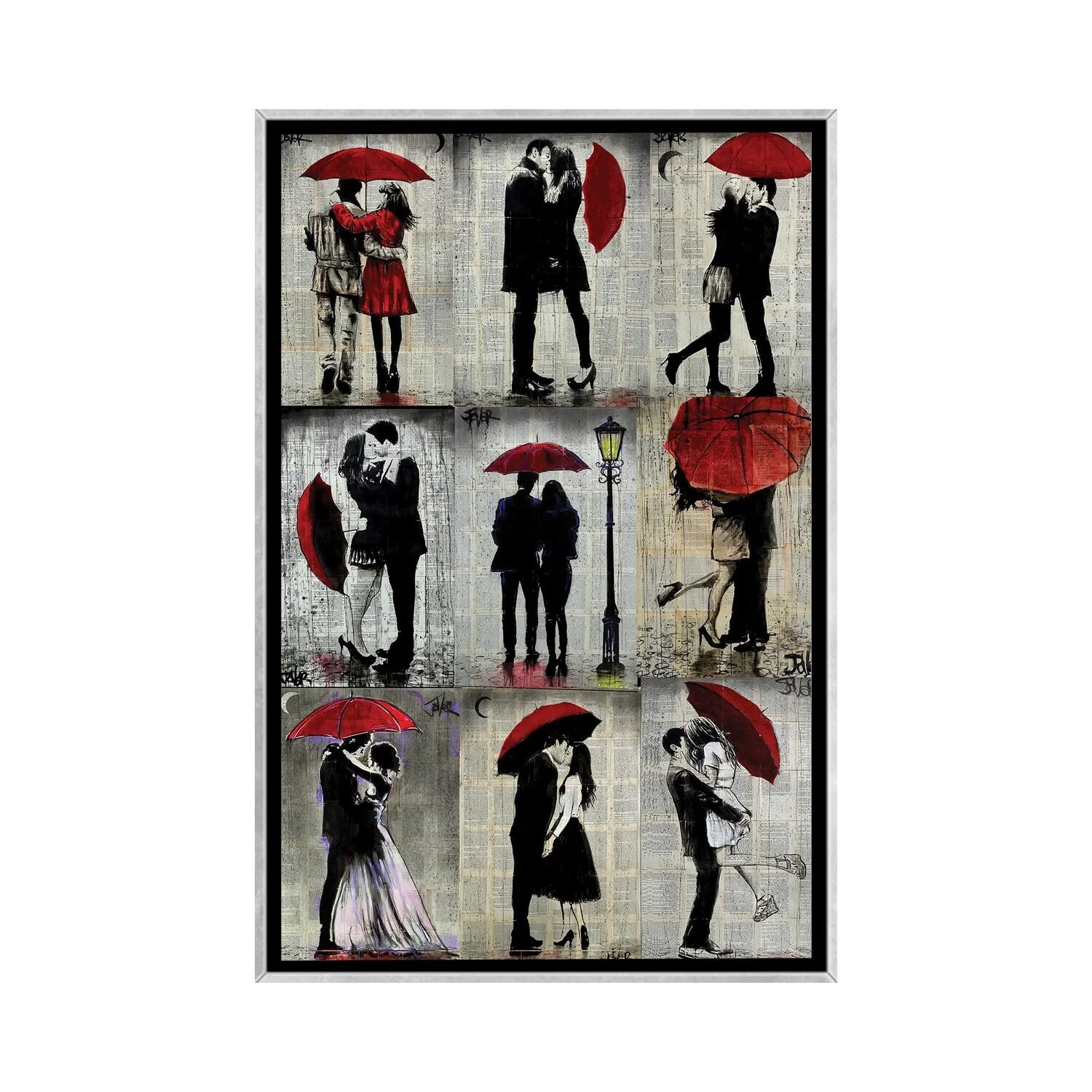 iCanvas "9 Red Umbrella" by Loui Jover Framed