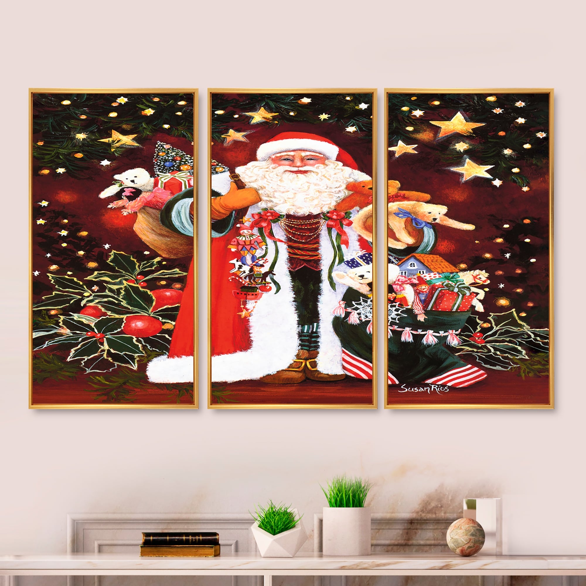 Designart "Happy Santa Claus Magic of Christmas" Traditional Framed Wall Decor Set of 3 - 4 Colors of Frames