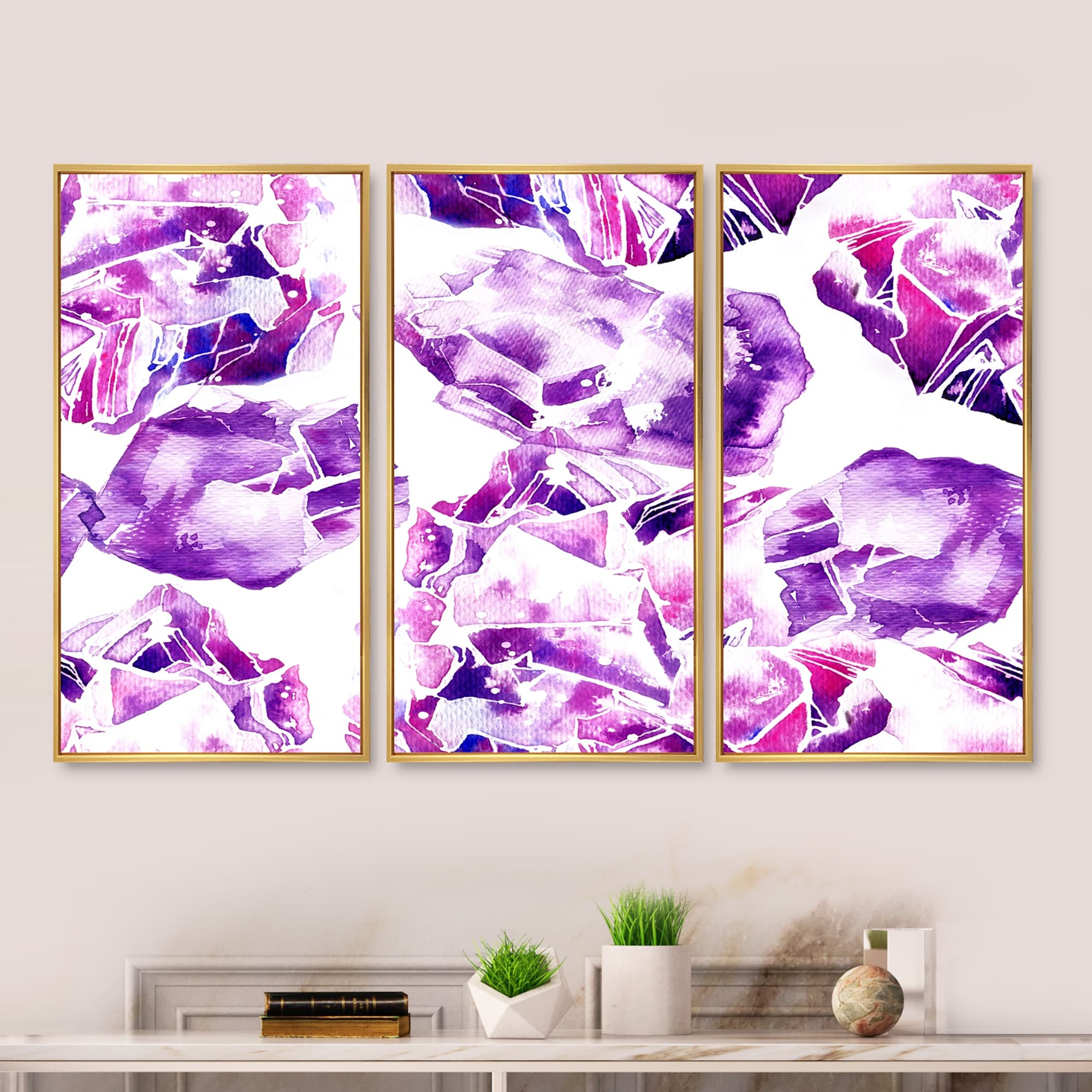 Designart "Magic Purple Crystals II" Modern Framed Artwork Set of 3 - 4 Colors of Frames