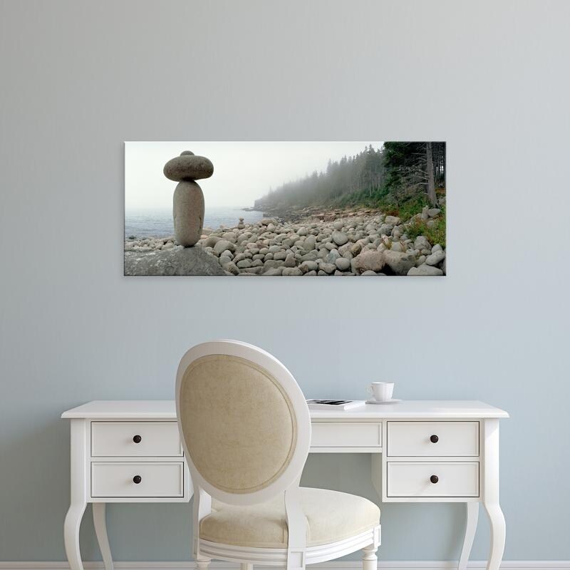 Easy Art Prints Panoramic Images's 'USA, Maine, Acadia National Park, Cairn on the rocky beach' Premium Canvas Art