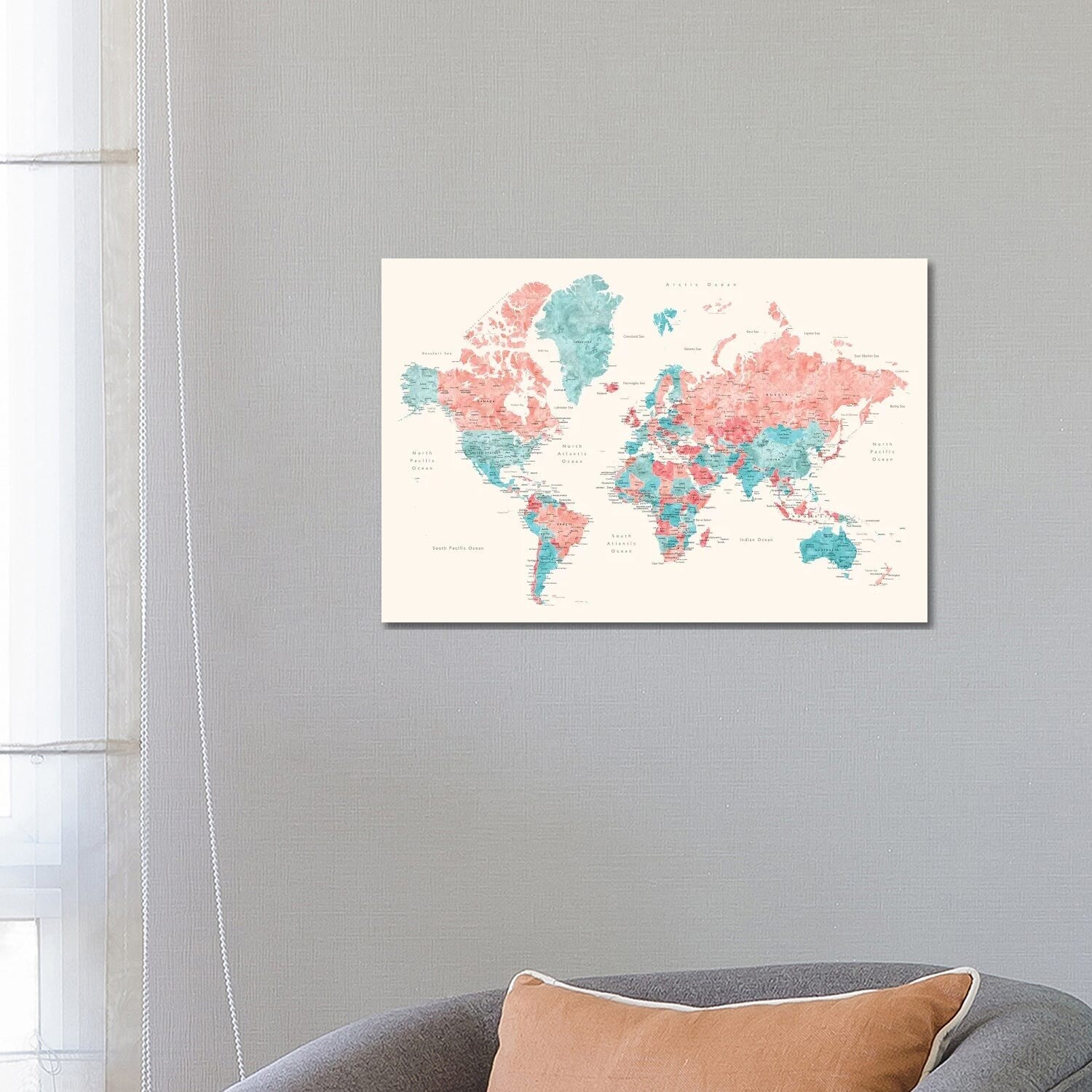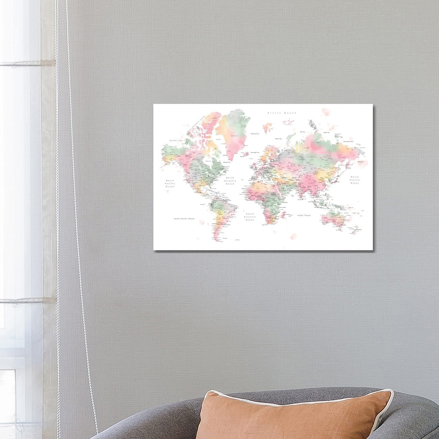 iCanvas "World Map With Main Cities, Isobel" by blursbyai Canvas Print