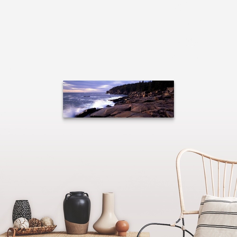 Easy Art Prints Panoramic Image 'Rock formation at seaside, Acadia National Park, Hancock County, Maine' Canvas Art