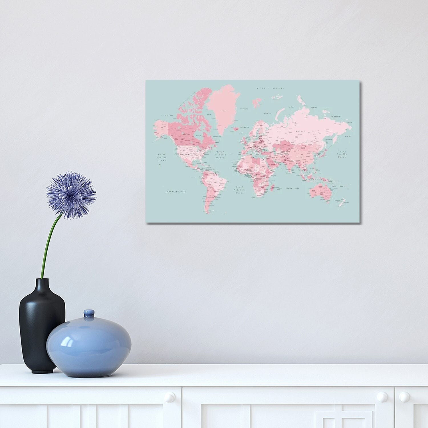 iCanvas "World Map With Main Cities Anjah" by blursbyai Canvas Print