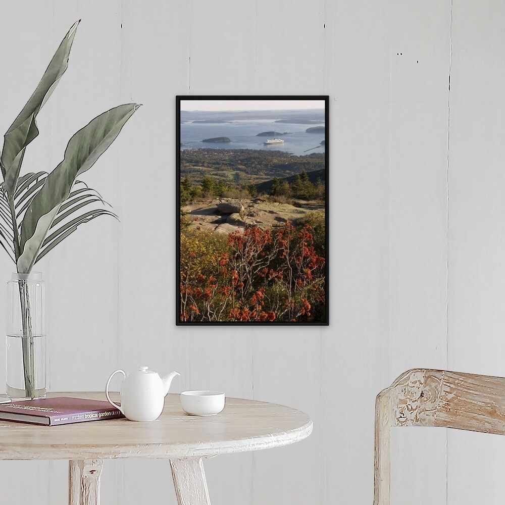 "Ferry in the sea, Bar Harbor, Porcupine Island, Acadia National Park, Maine" Black Float Frame Canvas Art