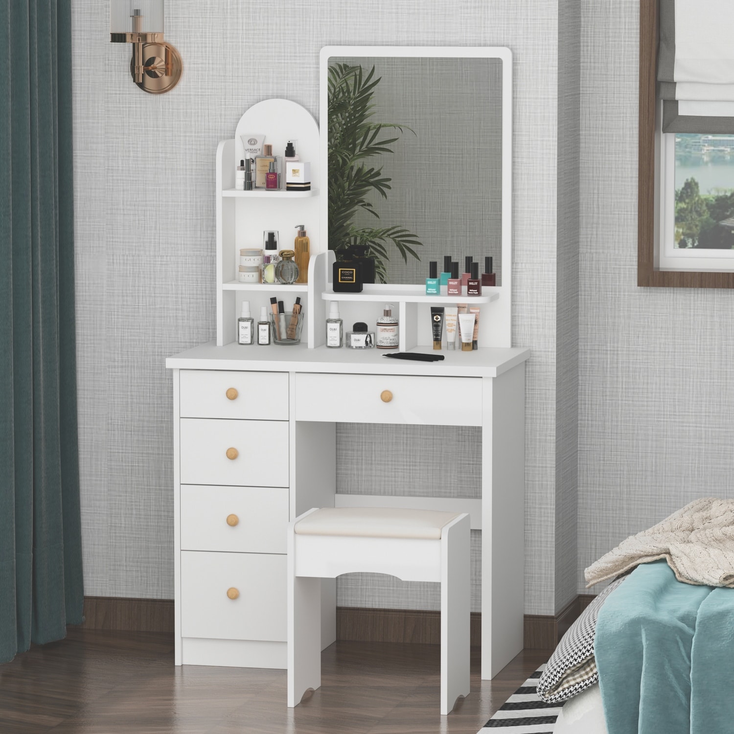 Timechee 31.5" Wide Makeup Vanity With Stool and Mirror - 31.5"W