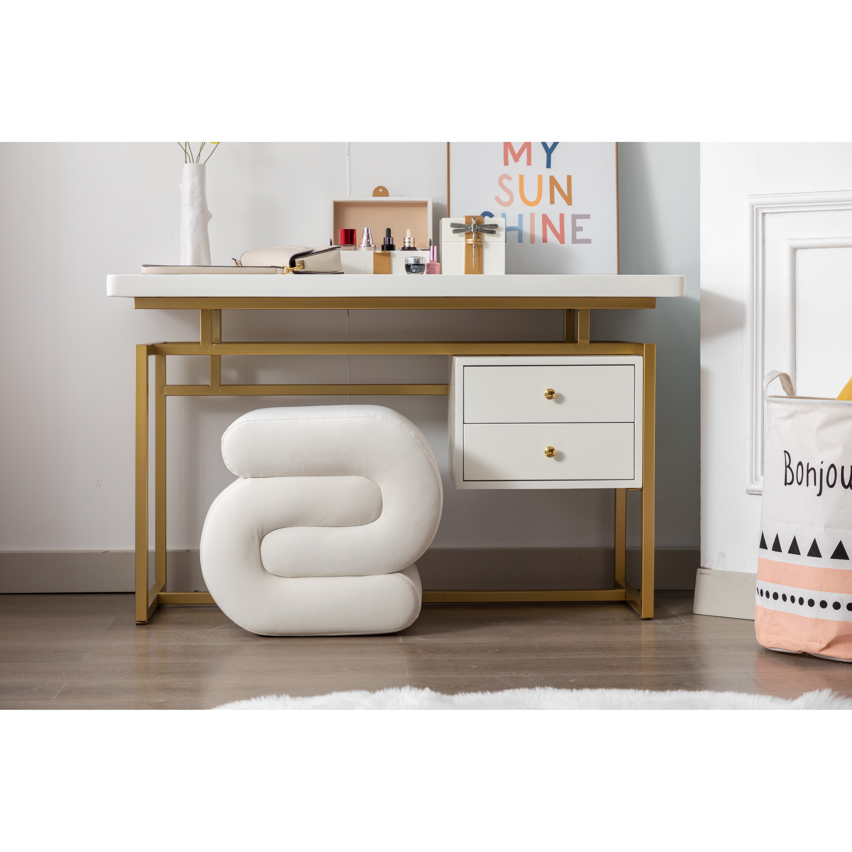 Modern S-shape Velvet Fabric Ottoman Makeup Stool Footstool