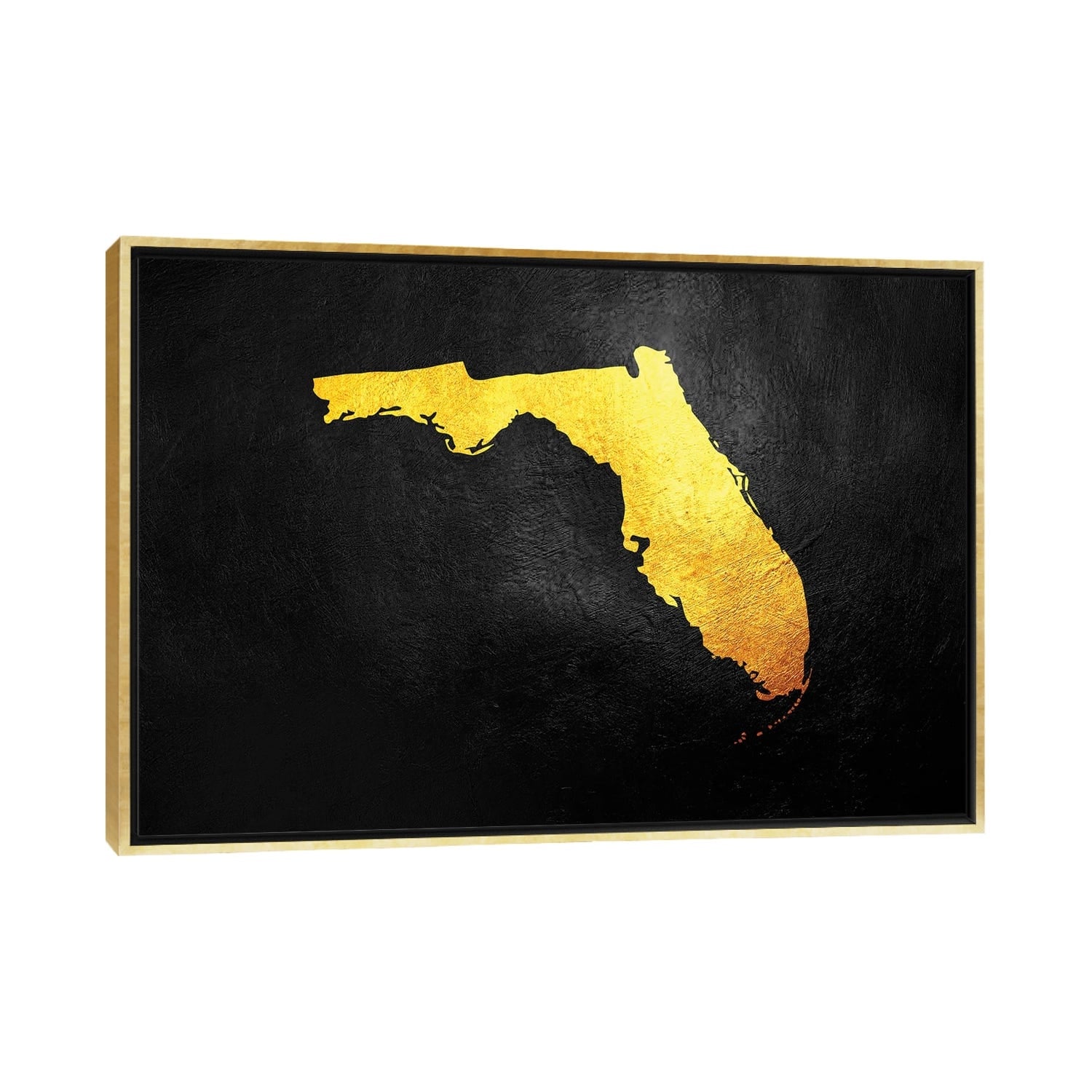 iCanvas "Florida Gold Map" by Adrian Baldovino Framed Canvas Print