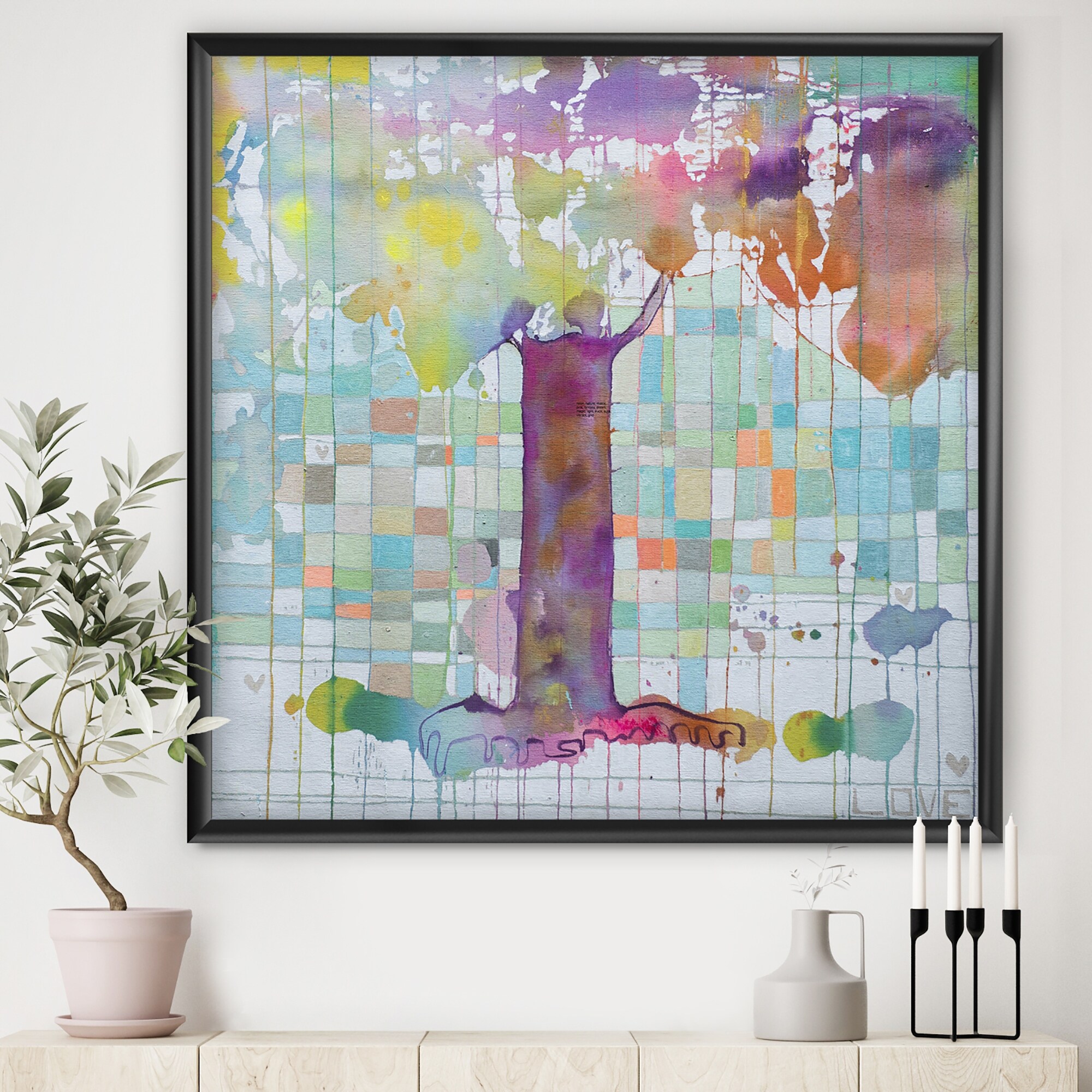 Designart "Tree Map Grid" Cottage Framed Art Print