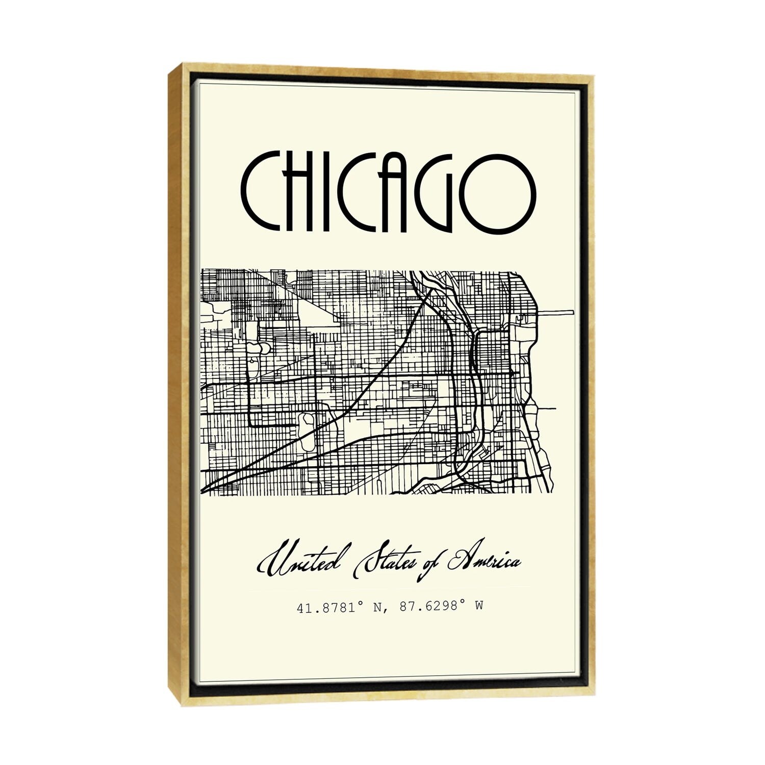 iCanvas "Chicago City Map" by Nordic Print Studio Framed Canvas Print