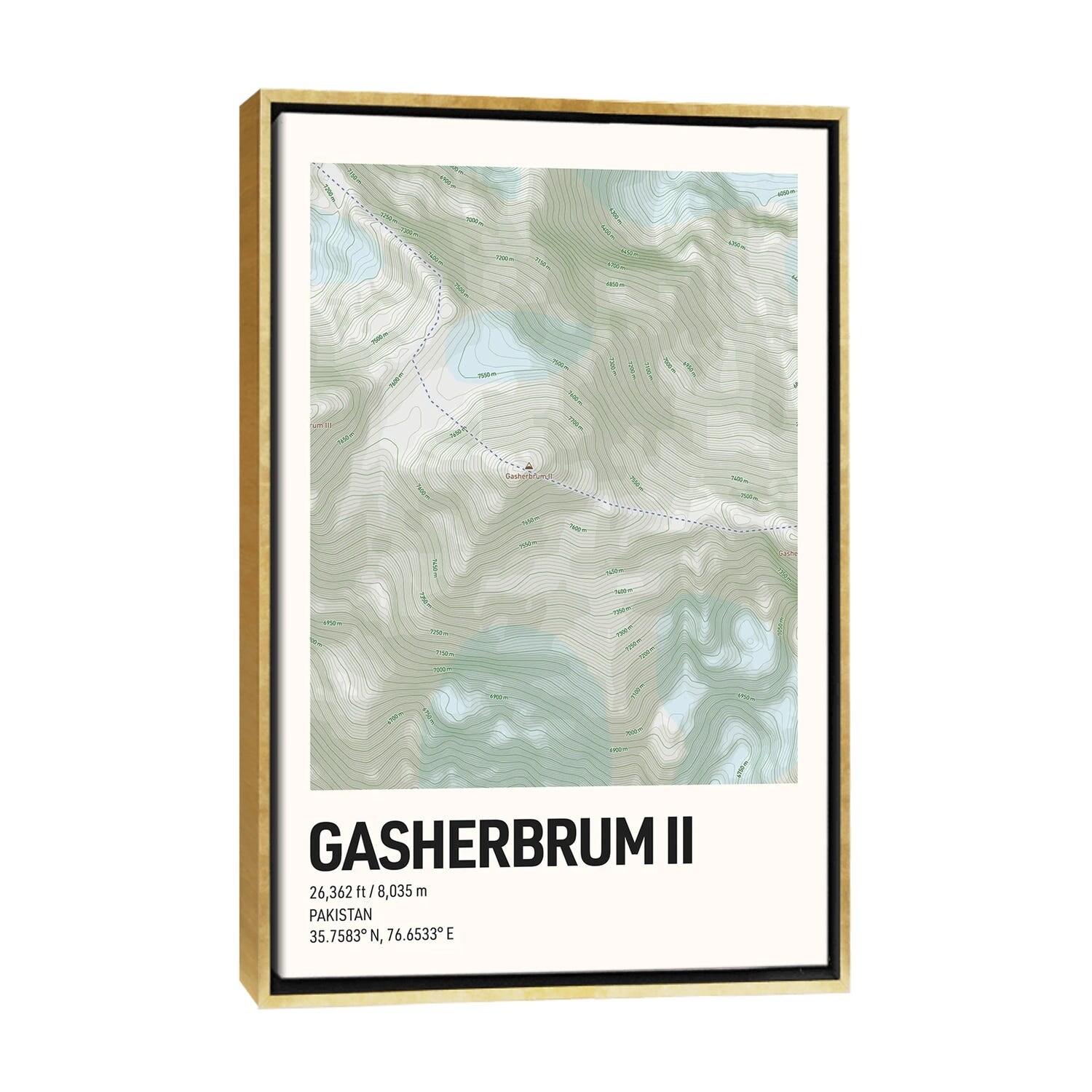 iCanvas "Gasherbrum II Topographic Map" by avesix Framed