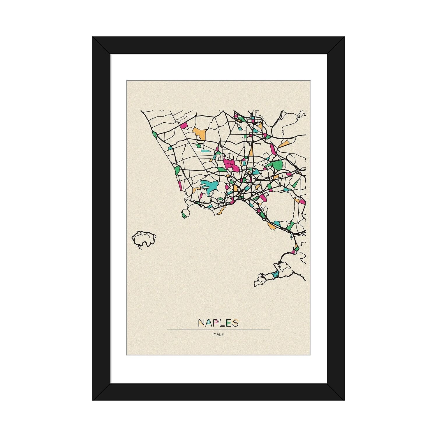 iCanvas "Naples, Italy Map" by Ayse Deniz Akerman Framed Canvas Print