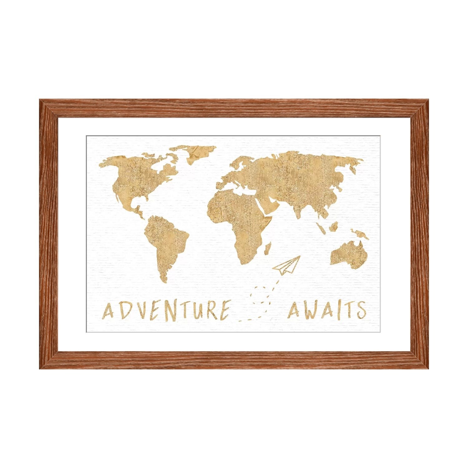 iCanvas "Adventure Awaits Map Metallic Gold" by Nature Magick
