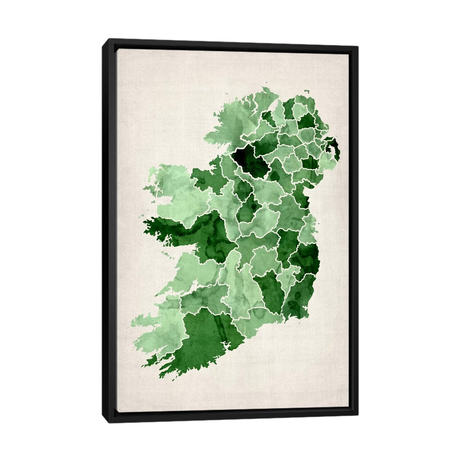 iCanvas "Ireland Watercolor Map" by Michael Tompsett Framed Canvas Print